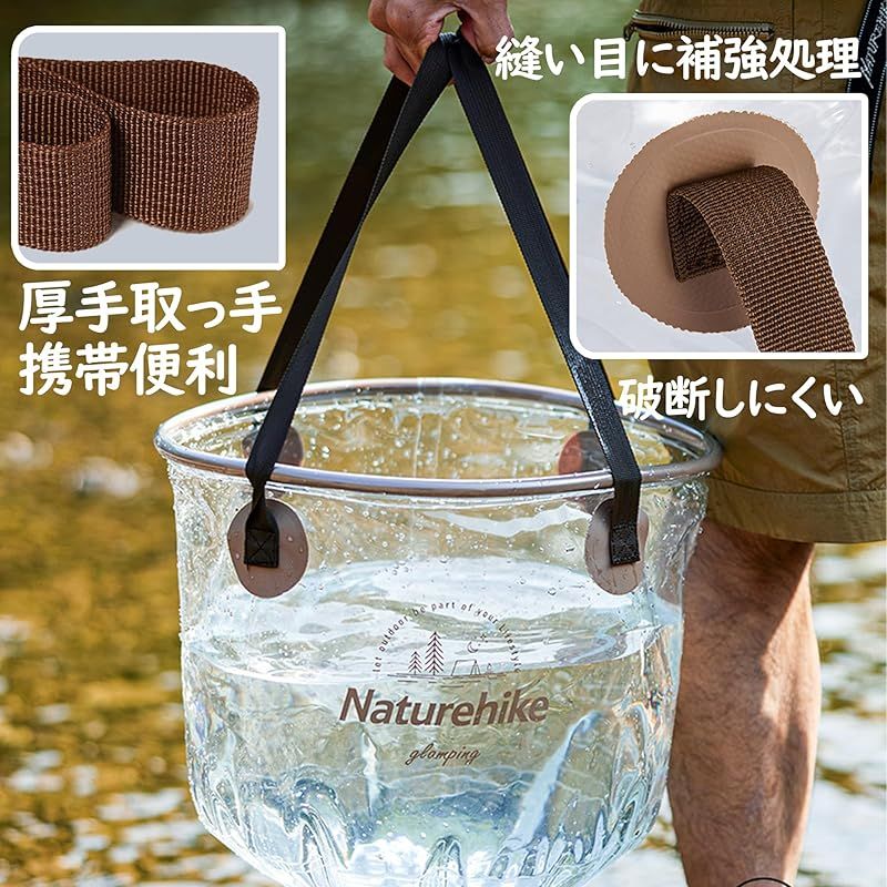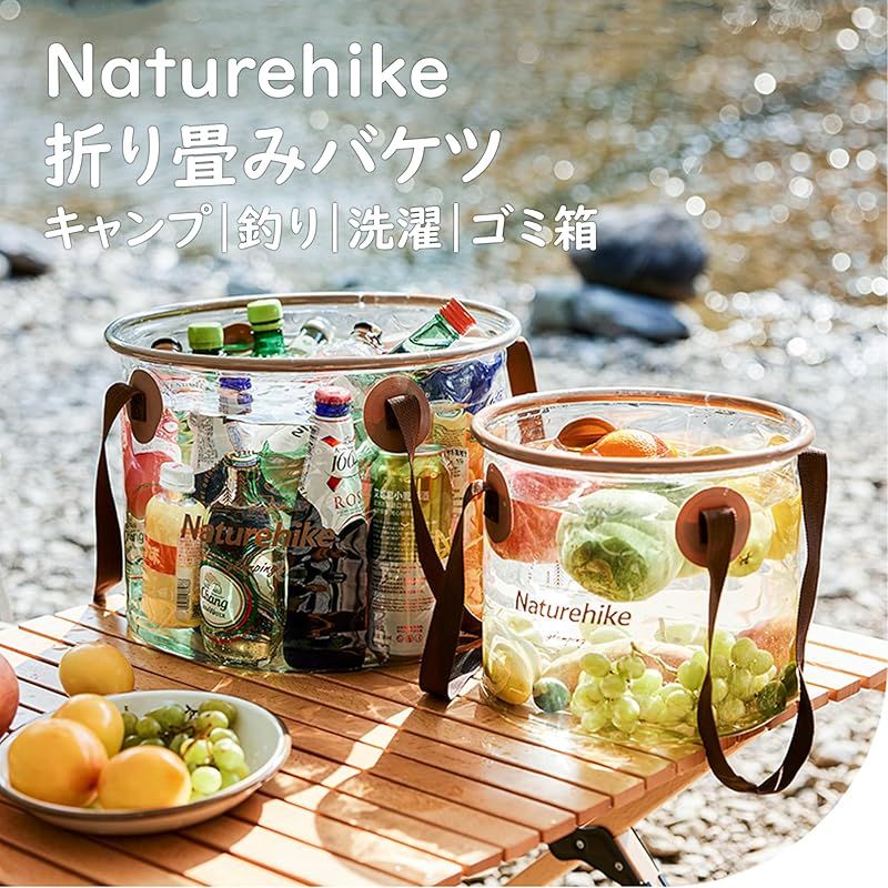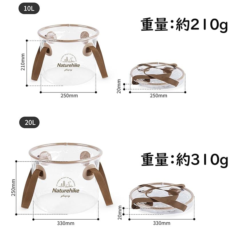 商品名:Naturehike 折りたたみバケツ 10L/20L 大容量 透明 210g超軽量 自立 多目的 折り畳み2cm 携帯便利 ウォータータンク 安定 耐荷重 洗濯 洗車 釣りバケツ ポータブル コンパクト アウトドア キャンプ ビーチ 果物を洗う 登山 防災タ
