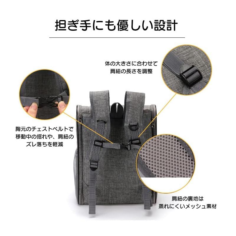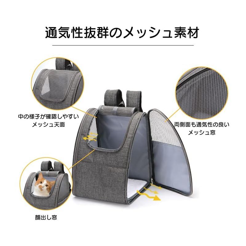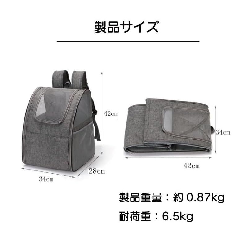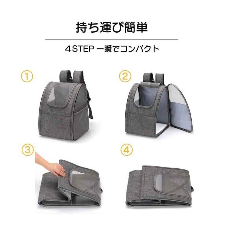 商品名:SMALY 小型 犬 猫 折りたたみ ペットキャリー リュック グレー 耐荷重6.5kg キャリー バッグ メッシュ うさぎ