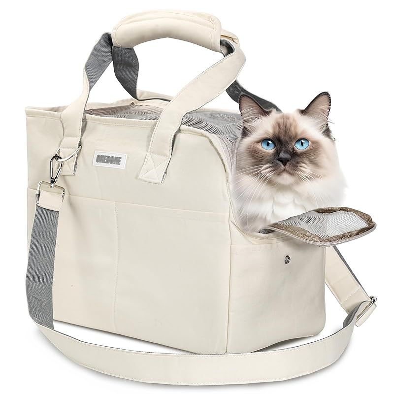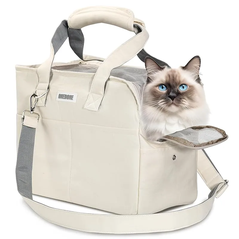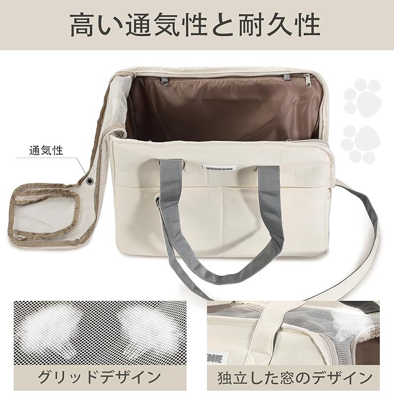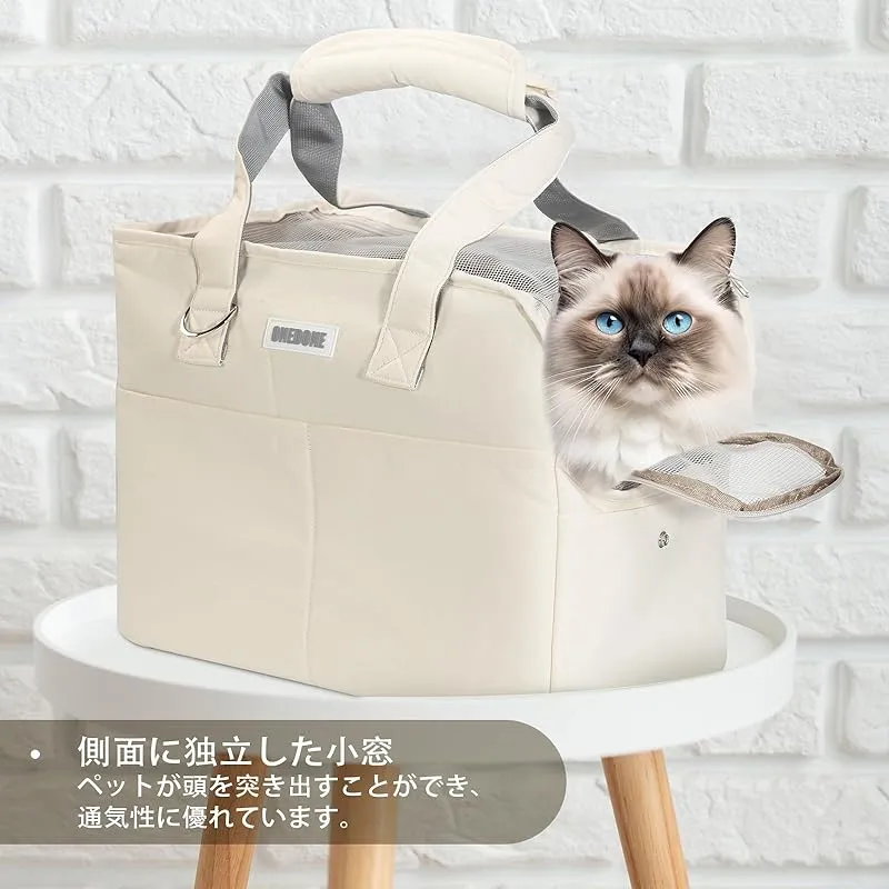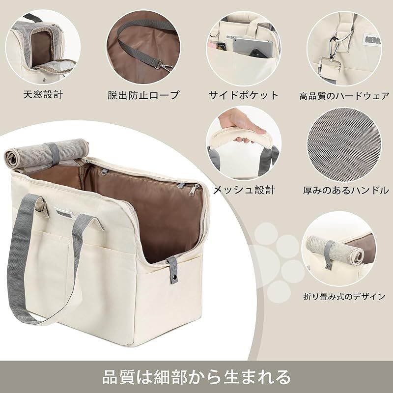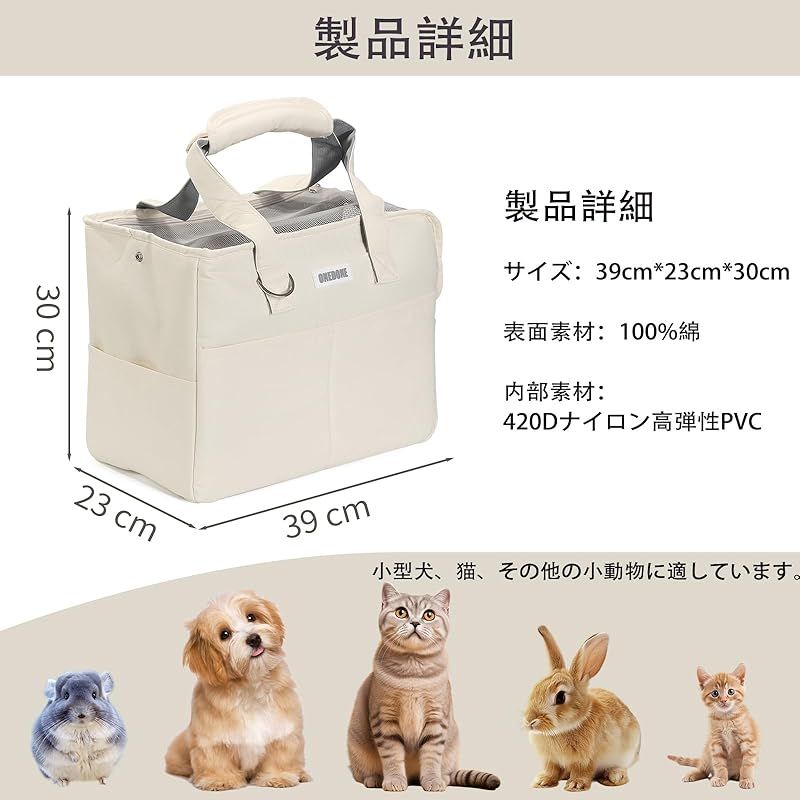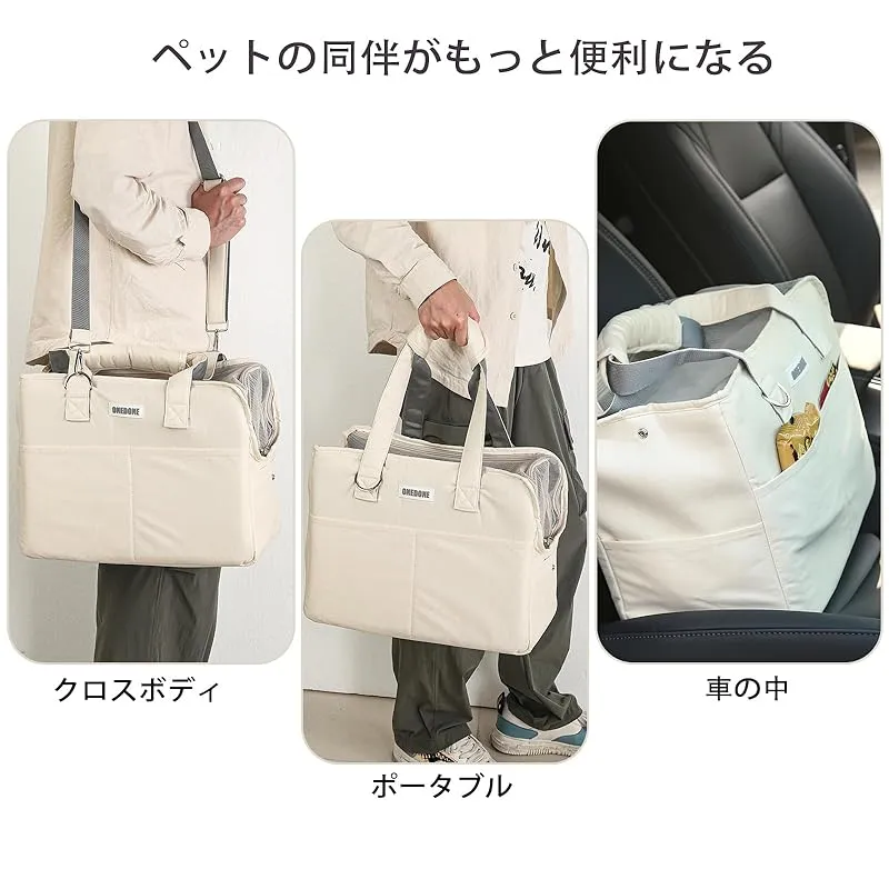 商品名:ONEDONE ペット キャリーバッグ マット付き 小型犬 猫用 キャリー ショルダー 手提げキャリーバッグ 通気性 2WAY ペットハウス ケージ 折り畳み お出かけ ドライブ 旅行 通院 防災 避難用 キャリー (オフホワイト)