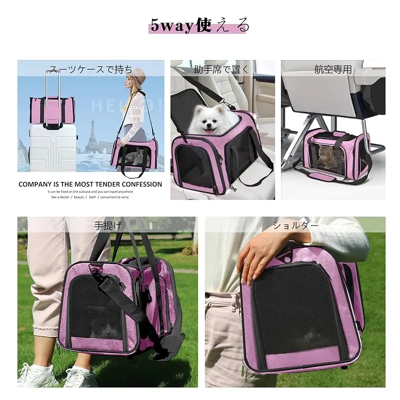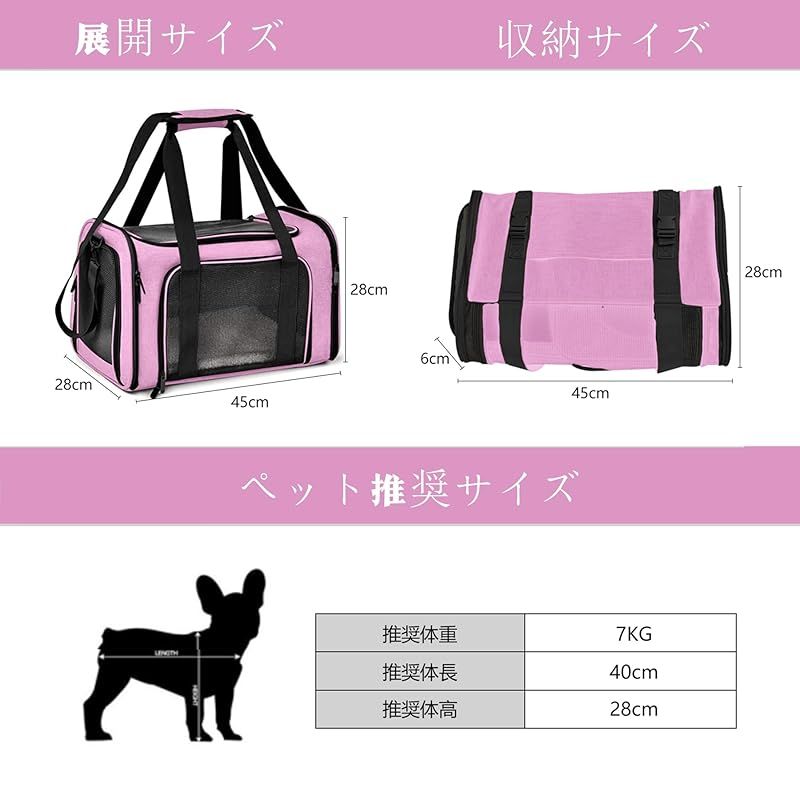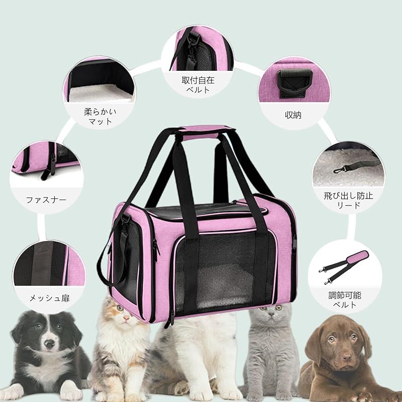商品名:AOKAZE ペットキャリーバッグ 猫用キャリー 犬キャリーバッグ 折りたたみ式 4way 洗える底マット 手提げ ショルダー脱着可 臭気がない 大型猫・中小型犬・うさぎ 広々空間 7kg耐荷重 お出かけ/車載/旅行/通院 ピンクM