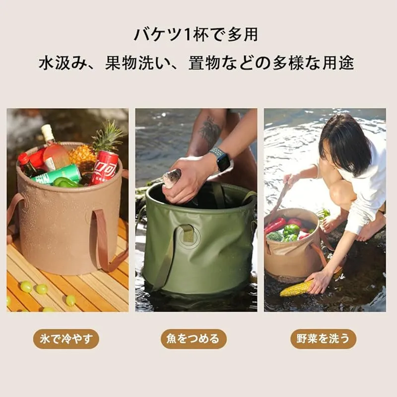 【多機能用途】この折りたたみバケツは用途が多様で、日常の貯水、アウトドア釣り、足湯、洗濯かご、アウトドアキャンプなどに使用でき、犬猫のバスタブ、防災用品、収納用品、釣りバケツ、園芸バケツとしても使用できる。