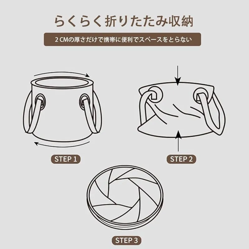 【折りたたみ可能設計】このバケツはコンパクトで、2 cmの厚さに折りたたむことができ、旅行バッグやキャンプバッグに自由に入れることができ、非常に省スペースです。