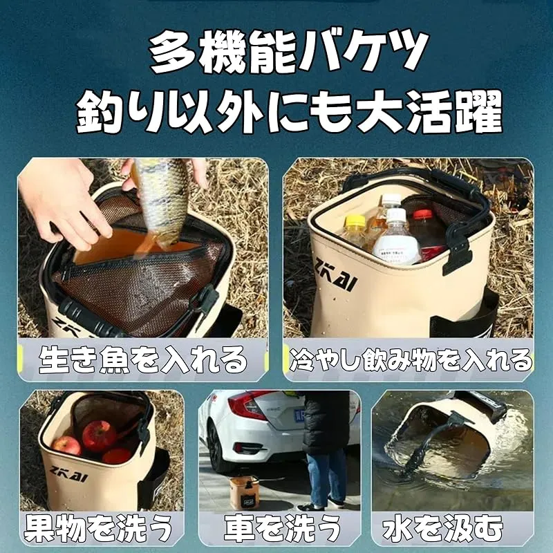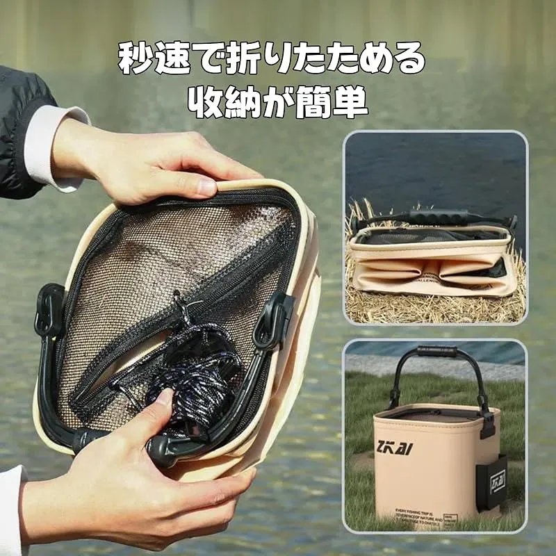 ?幅広い用途:釣り道具としてだけでなく、キャンプや洗車、屋外での汲み置きや災害時にも使えるので、アウトドアの必需品です。