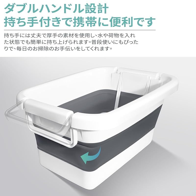 【持ち手付きで持ち運びに便利】この折りたたみバケツはハンドル付き、持ち運びやすいデザインです。女性の携帯に適しています。人間工学に基づいたデザインで、ハンドルが長く、接触面積が広く、手への圧力を低減します。水や荷物を持っていっても、一人で簡単に運べます、日常の清掃作業も楽々対応。