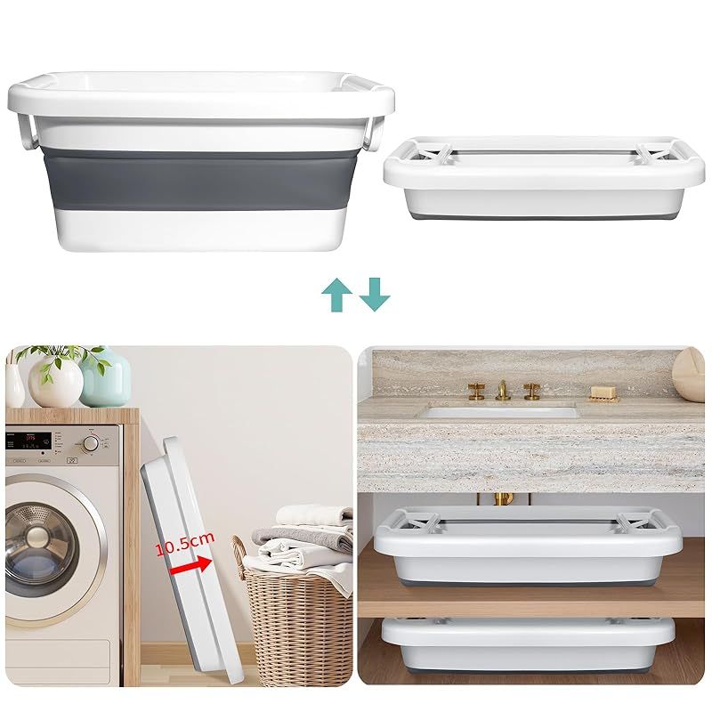 【折りたたみ収納、吊り下げ収納】普通のバケツと違って、このバケツは折りたためるデザインになっています。スリット収納が可能なコンパクトデザインで、折りたたむと厚さはわずか10.5cm。使用後は折り畳んでシンクの下や隙間に置くことができ、壁掛け用の吊り穴が付いている、収納スペースを節約できます。