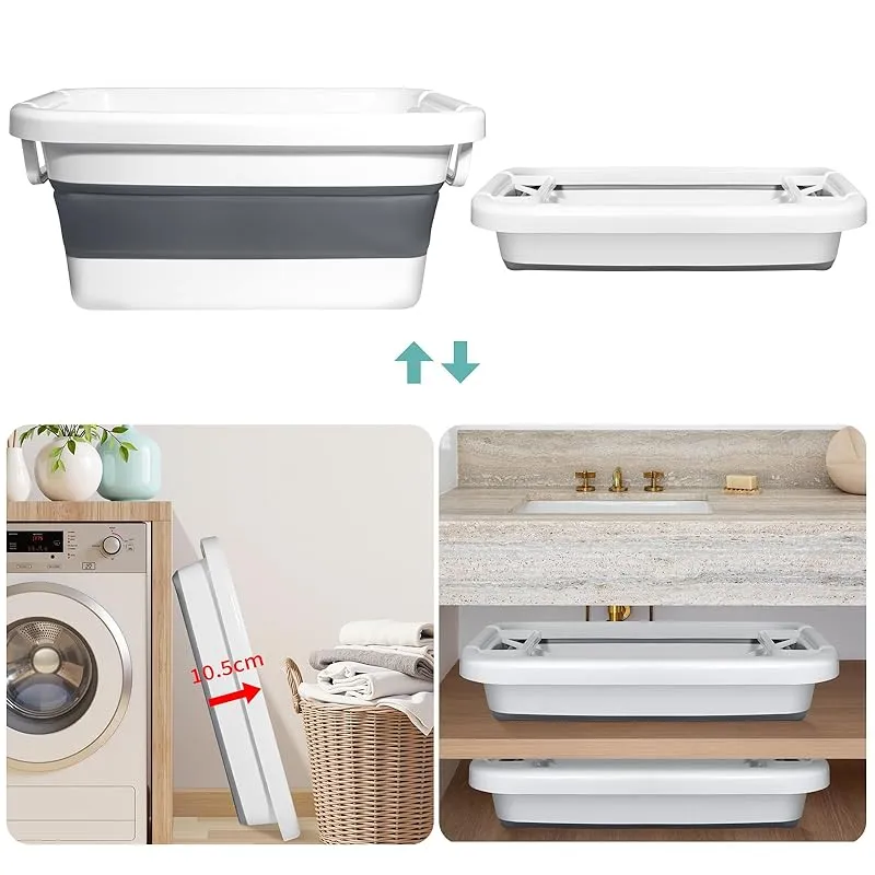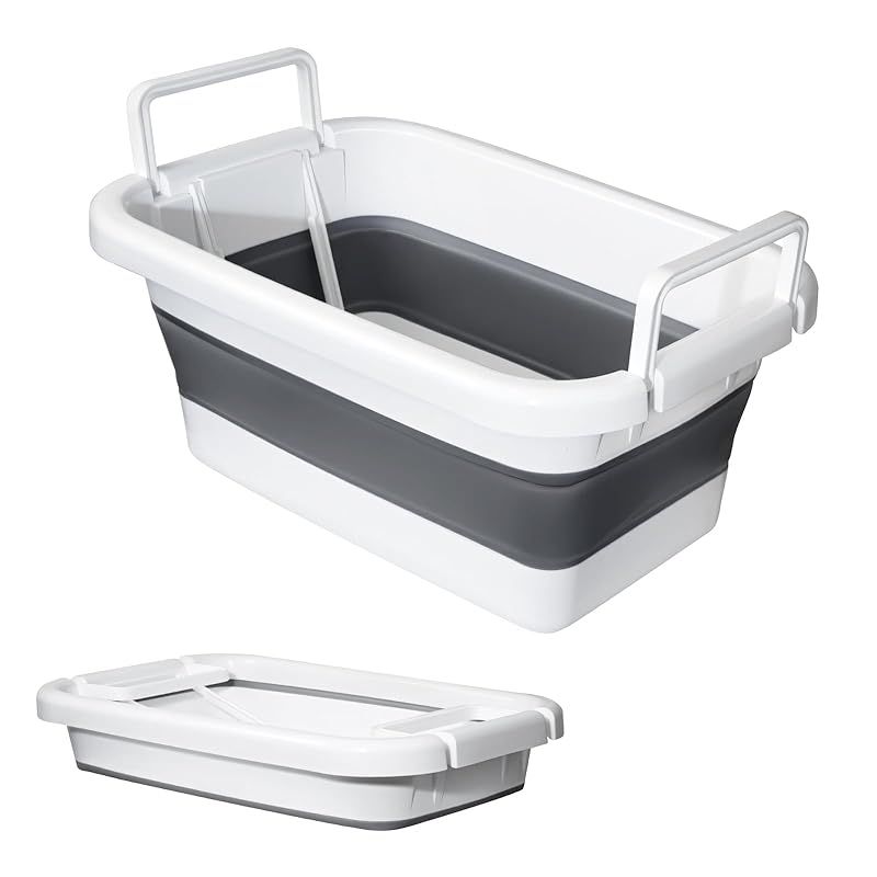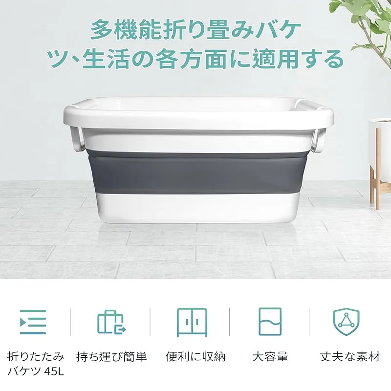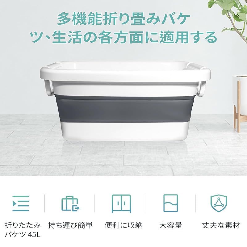 商品名:Vevesoas 洗い桶 折りたたみたらい 大型 45L 大容量 内蔵サポート構造変形防止 洗濯バケツ シリコ キッチン 収納 省スペース 多機能バケツ 使用可能洗車、釣り用、園芸、掃除、足浴、犬 お風呂、衣類・靴つけ洗い、安全素材 持ち運び便利 内外に適用