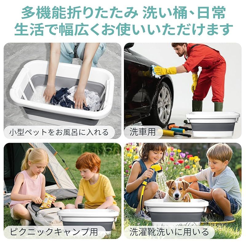 【多機能性、多用途折りたたみ バケツ】こちらの折り畳みバケツは様々なシーンに対応できるように工夫されています!各種の場合に適用して釣り、洗濯、掃除、洗車、園芸、防災、家庭収納、戸外収納、車内収納の理想的な選択である。また、浸け桶として靴の甲や運動靴を洗ったり、犬や猫のお風呂桶としても使える便利な生活体験を提供します。