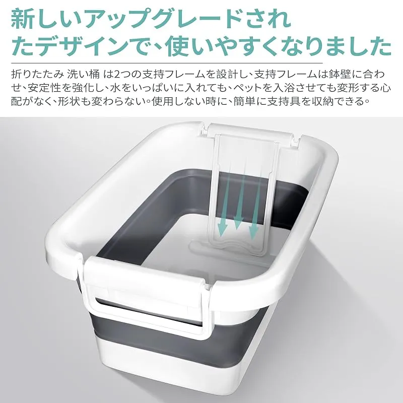 【新しいスタンドデザイン】耐久性に優れた2つのブラケットを内蔵し、支持フレームはバケツ壁に合わ。ブラケットにより安定性が向上し、ブラケットにより安定性が向上し、水を満たしても、ペットを入浴させても変形しません。形が変わることも、崩れることもありません。使わないときはスタンドで簡単に収納できます。前記折り畳みバケツは専用排水口を備えて、簡単に水を注ぐことができて、生活の中の助力である。