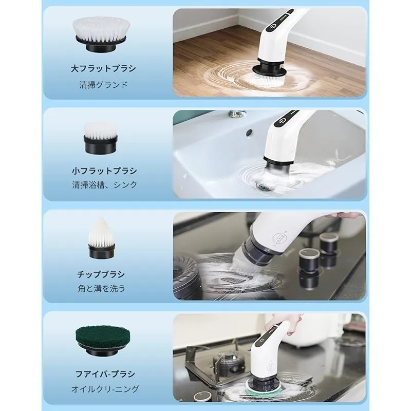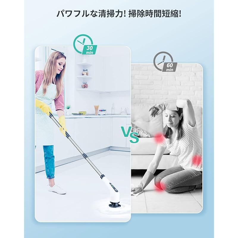 商品名:Leebein バスポリッシャー 電動お掃除ブラシ 8つ取り替えブラシ付き お風呂掃除 ターボプロ ブラシ USB C充電式 長さ伸縮可能 手持ち式 5000mAh大容量 90分間連続使用 風呂 浴室 浴槽磨き トイレ掃除 床 窓 壁 玄関 年末掃除 日本語説