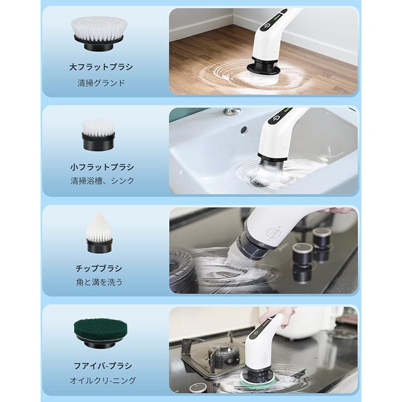 Leebein バスポリッシャー 電動お掃除ブラシ 8つ取り替えブラシ付き お風呂掃除 ターボプロ ブラシ USB C充電式 長さ伸縮可能 手持ち式 5000mAh大容量 90分間連続使用 風呂 浴室 浴槽磨き トイレ掃除 床 窓 壁 玄関 年末掃除 PSE認証済み 日本語説明書付属