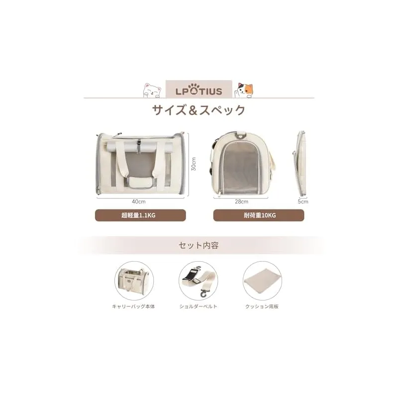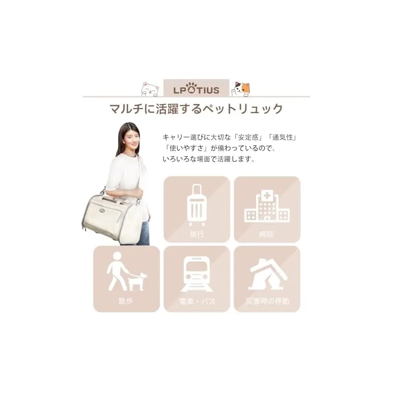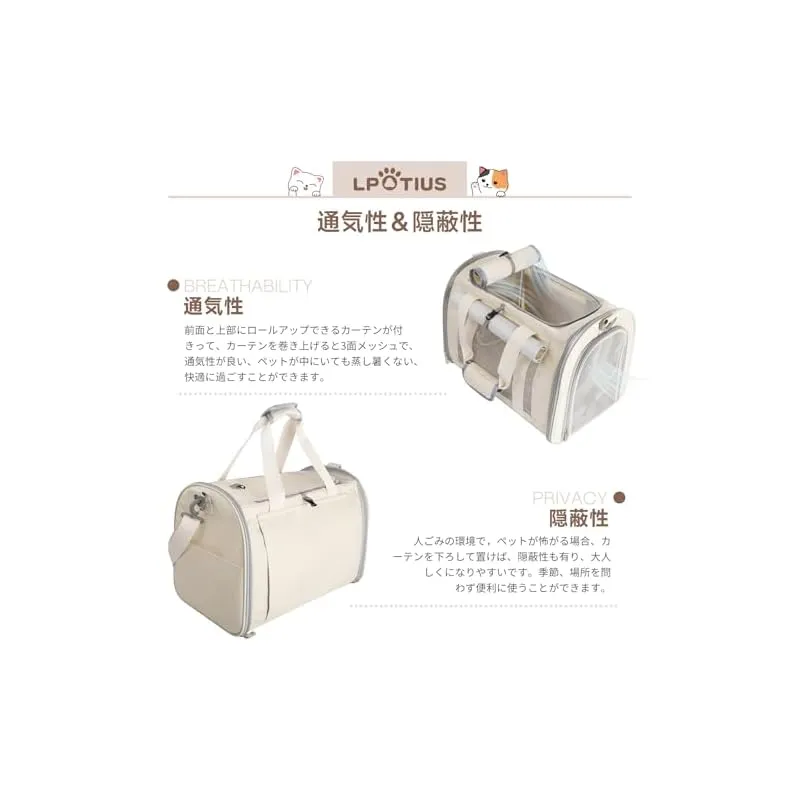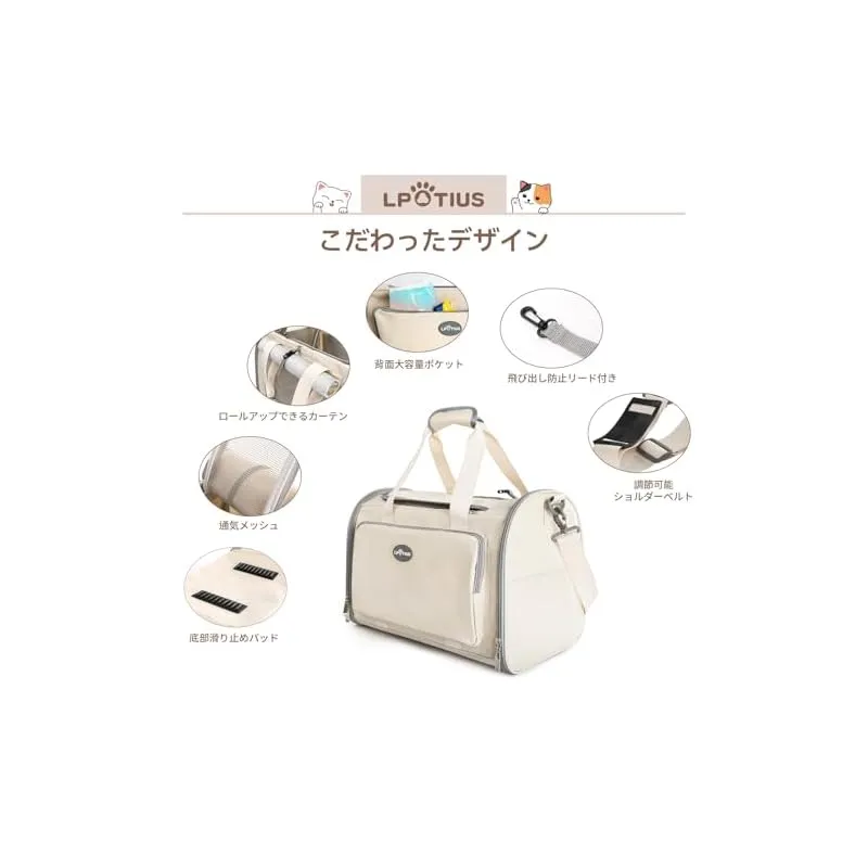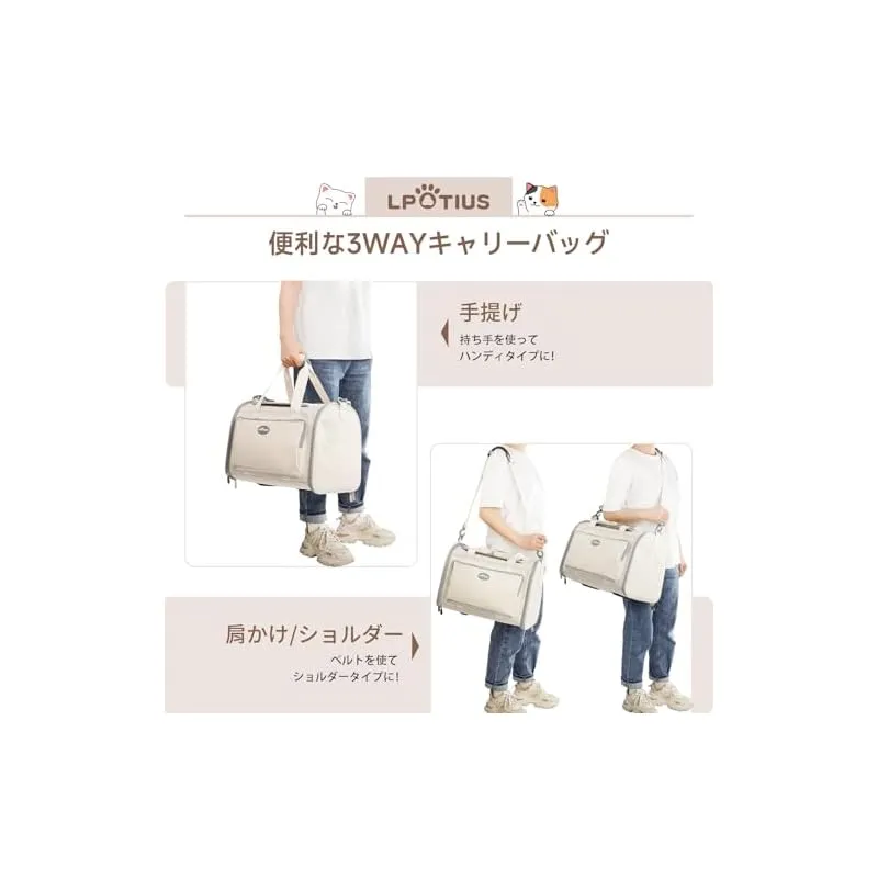 商品名:LPOTIUS ペットキャリー バッグ 折り畳み 2way 猫 小型犬 キャリーバッグ 軽量 3面通気 洗える 猫 キャリー 犬用キャリーバック 飛び出し防止リード付き ペット用 キャリーケース ベルト脱着可能 お出かけ 車載 旅行 通院 電車移動 災害避難に