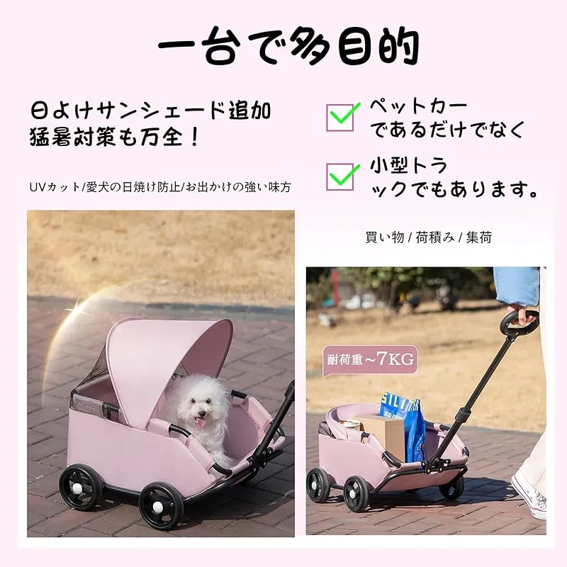 【高品質材質】ペット用カートは高強度と硬度を備えた軽量のたんそこうフレームで作られ、変形しにくく、耐久性が優れます。軽量で丈夫な素材で作られたペットカート、高品質のオックスフォード生地は遮光性や防水加工があり。
