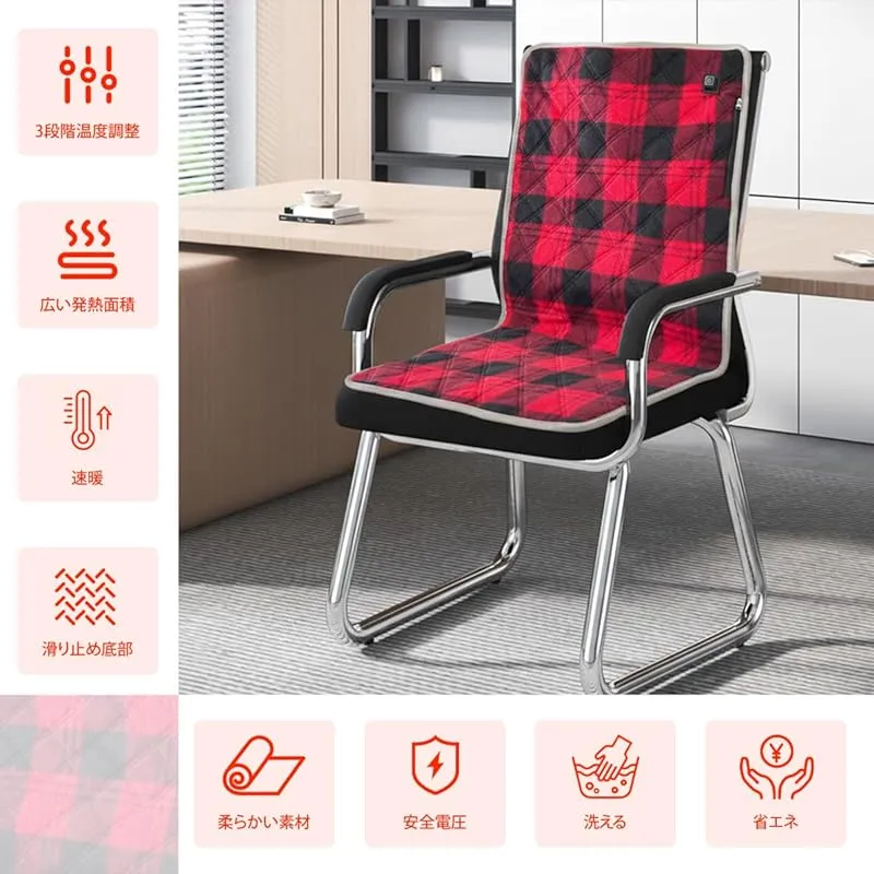 商品名:RIDESAIPU ホットマット 電気座布団 USB給電 一人用 ホットカーペット 椅子用 クッション 電気ホットマット あたため 省エネ 速暖 洗える 3段階温度調整 暖房器具 寒さ対策 足元 オフィス 自宅 デスクチェア プレゼント 45×90cm レッド
