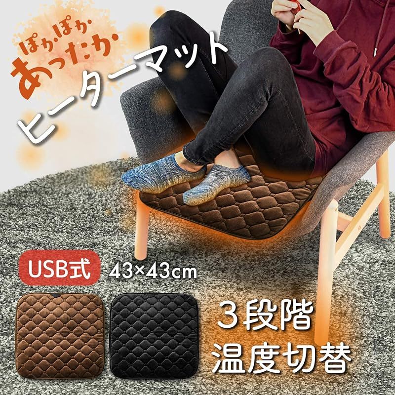 商品名:MRG ホットマット ホットカーペット 温度調節 ミニ 電気カーペット USB 一人用 ヒーター ペット キャンプ 43×43cm ミニマット 座布団 冷え コンパクト (ブラックnew)