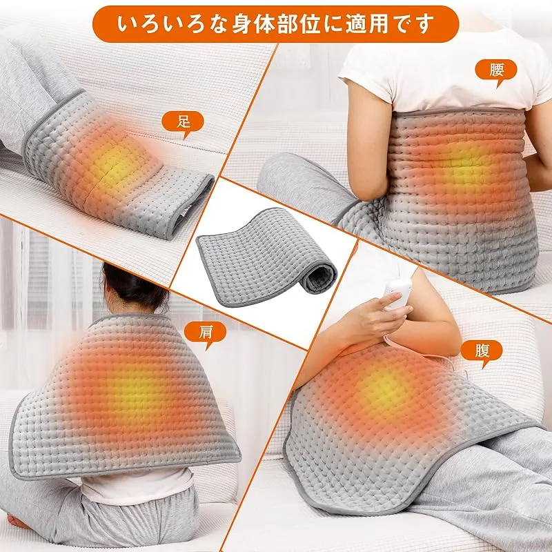 【様々なシーンで大活躍】 ?肩・腹・膝・肘・足に適用で、体の痛み、冷えや疲れを効果的に和らげます。 ?また、携帯便利で、家やオフィスやホテルなどたくさんの場所で使えます。 ?お子様からお年寄りまで幅広くご利用いただけ、友人や家族などへのプレゼントとしても最適です。注意:ホットマットの上に座らないでください。0 ~ 3歳児使用禁止です。