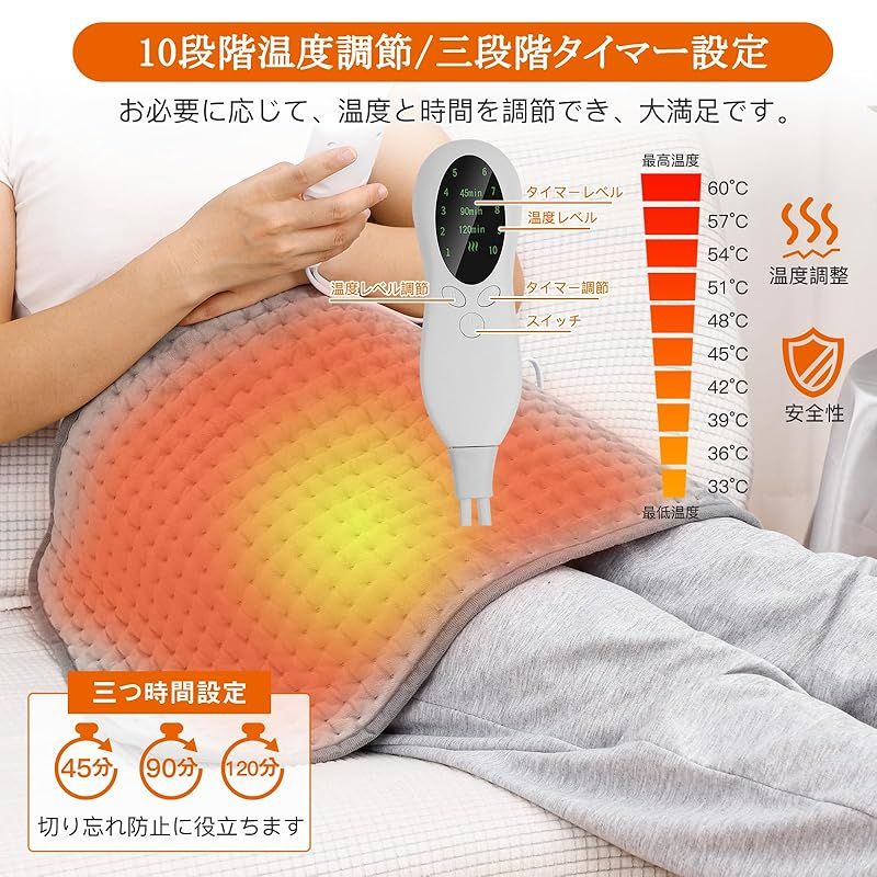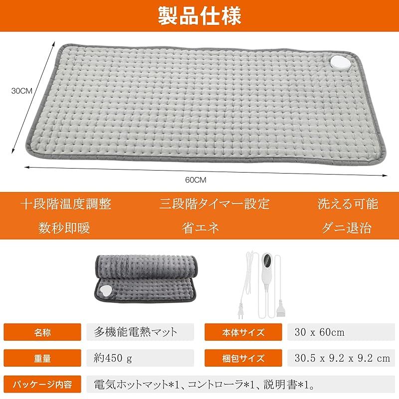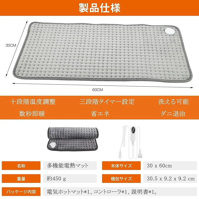 商品名:DEWEL ホットマット 電気マット 10段階温度調節 タイマー機能付き 過熱保護 30*60cm 電気カーペット 電熱マット 速暖 防寒対策 ひざ掛け/肩掛け/足掛け 省エネ 丸洗い可能 在宅勤務 オフィス PSE認証済