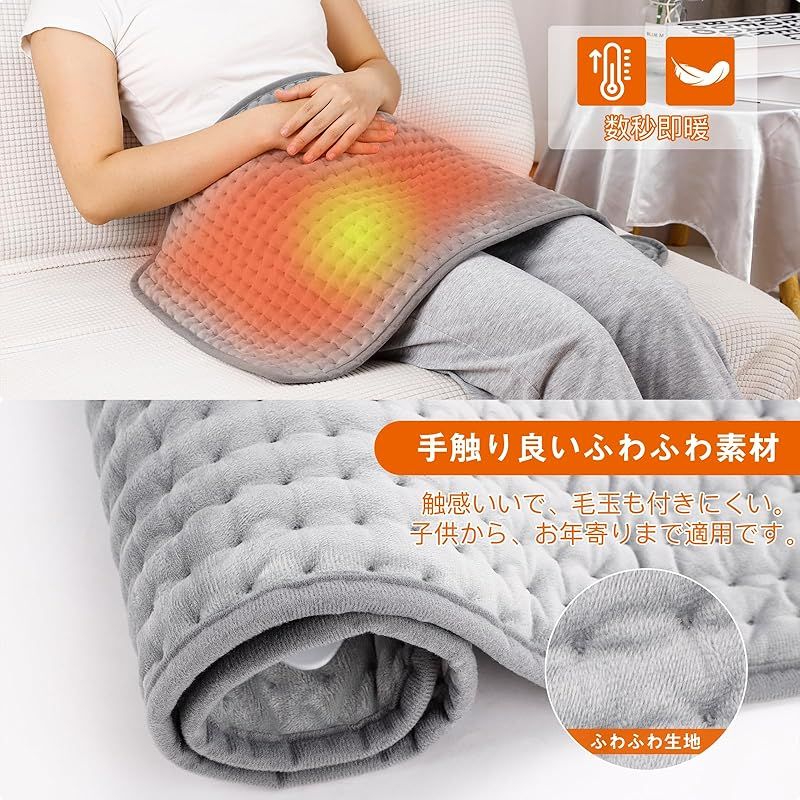 【数秒にヒートアップ*柔らかい手触り】 ?電気カーペットは高品質のU型加熱ワイヤーを使用し、温度センサーが内蔵してリアルタイムに温度を監視し、均一に加熱することができ、すぐに体を温まります。 ?またふわふわ生地で、手触りいいだけでなく、毛玉出てにくく、長持ちできます。
