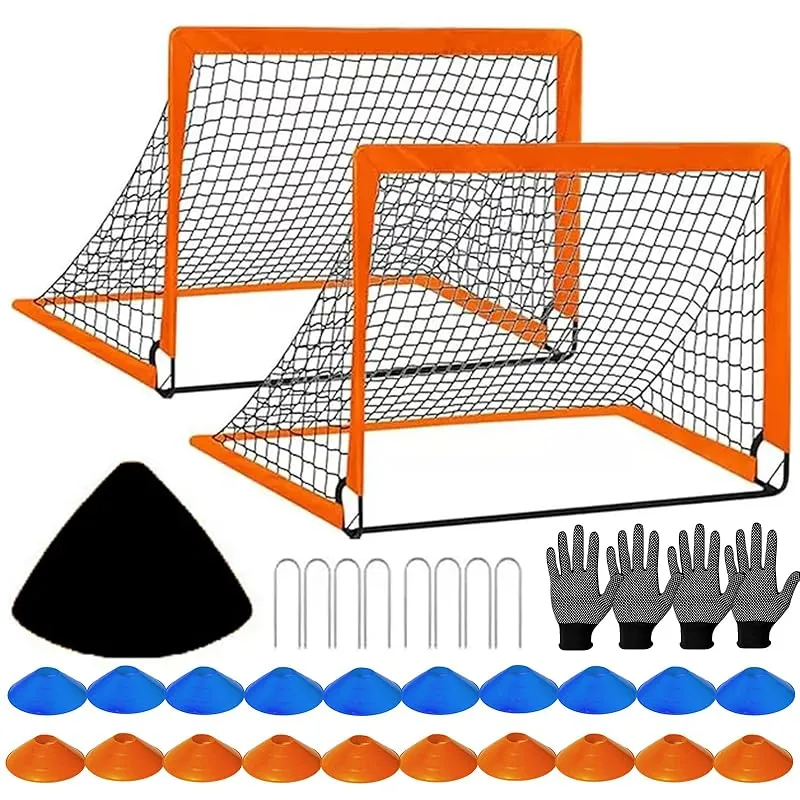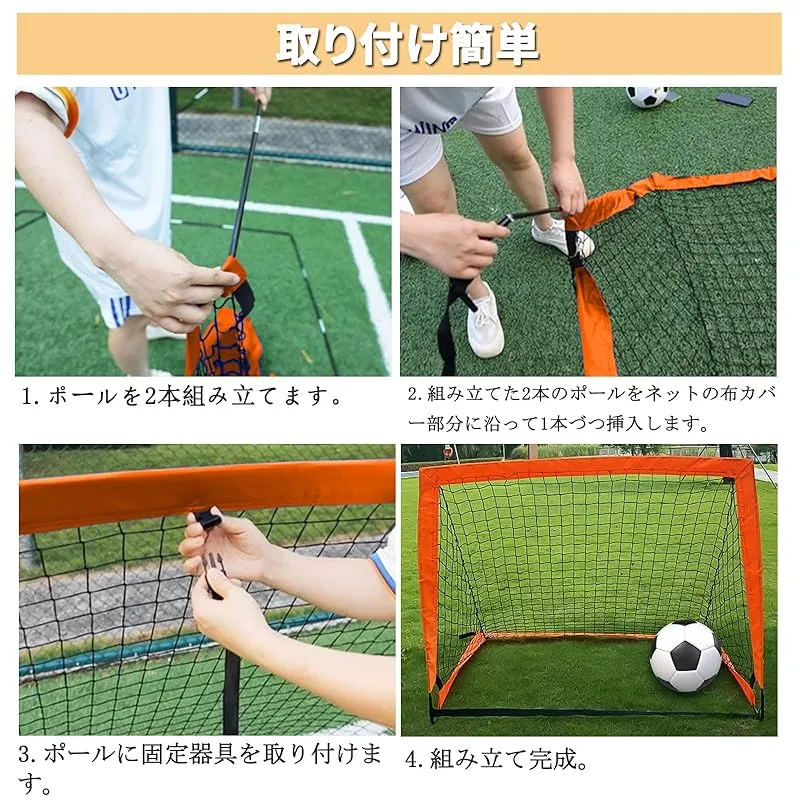 商品名:ELECTRO-WEIDEWORLD サッカーゴール 120x90cm 簡単組み立て 折り畳み収納 マーカーコーン付き 室内屋外兼用 ミニゴールセット 収納バッグ付き 持ち運び サッカー フットサル 練習器具 試合 対戦 卒業記念 卒団記念 (2個セット)