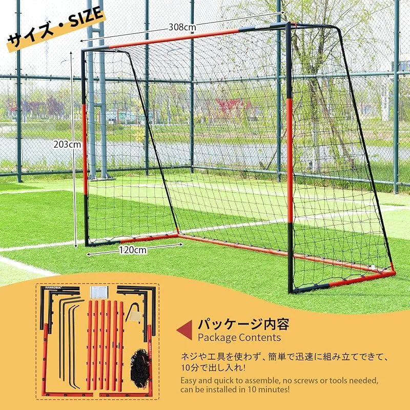 商品名:KAIHAOWIN サッカーゴール 308 x 203 x 120 cm フットサルゴール 家庭用 八人制サッカーゴール 折りたたみ 室内/屋外兼用 ポータブル サッカー フットサル ゲーム 対戦 練習 トレーニング キッズ 子供/大人用 (XL))