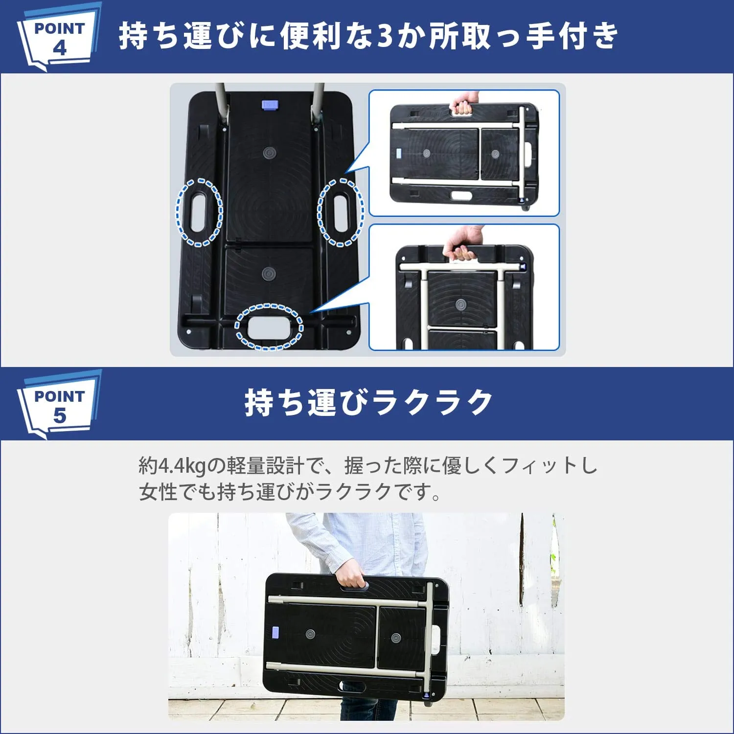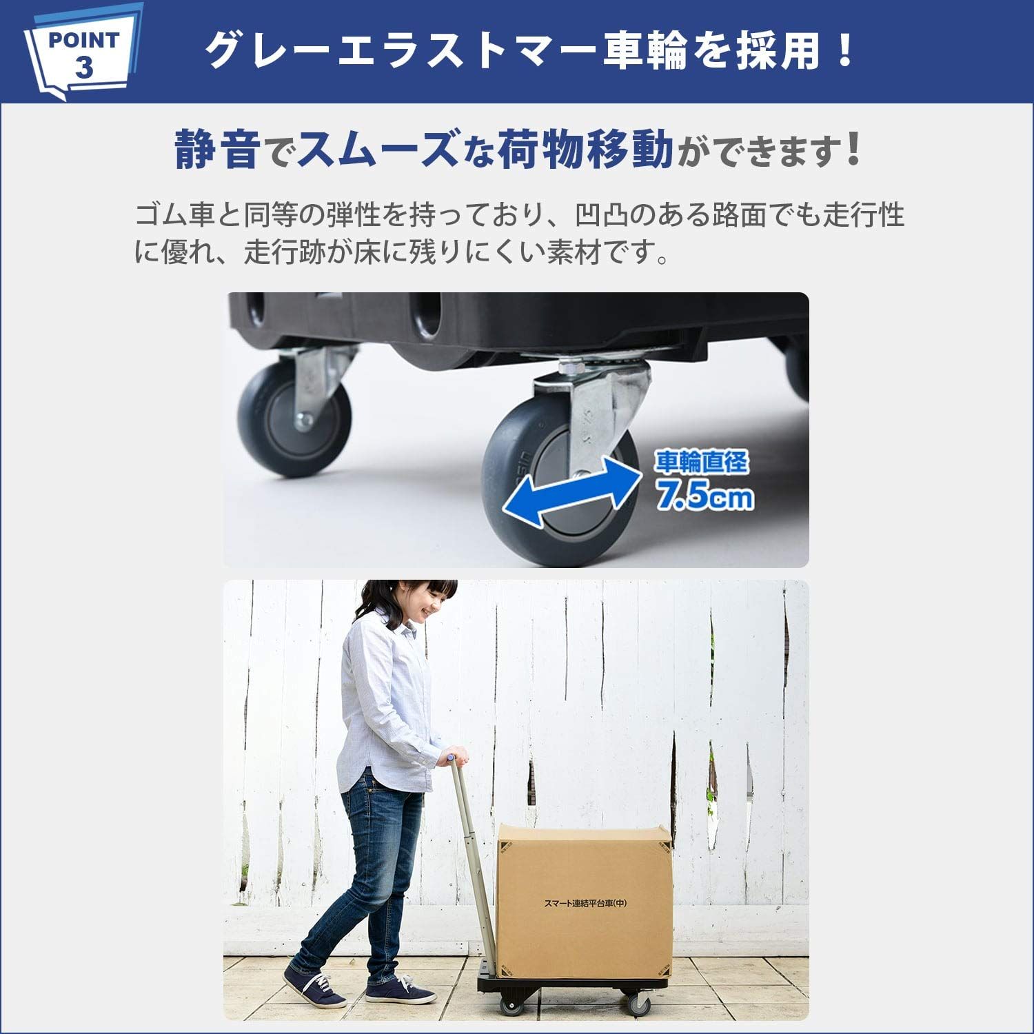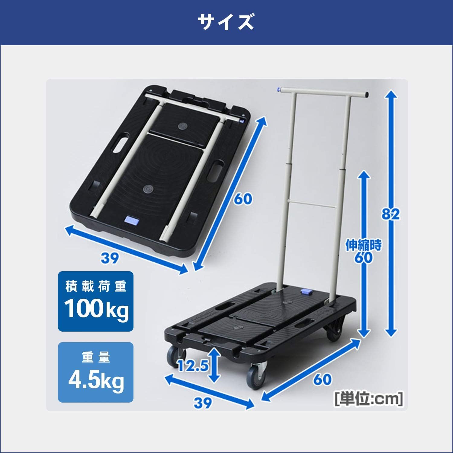 材質:床板=PP、ハンドル=スチール、キャスター=エラストマー