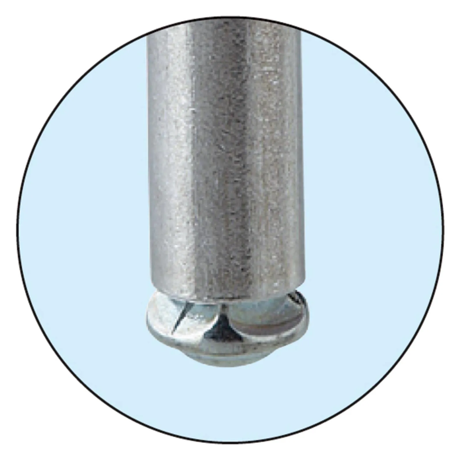 スリーブが4方向に大きく開く事で紅や板や樹脂、ゴムなどの柔軟母材をしっかり保持しながら締結します。