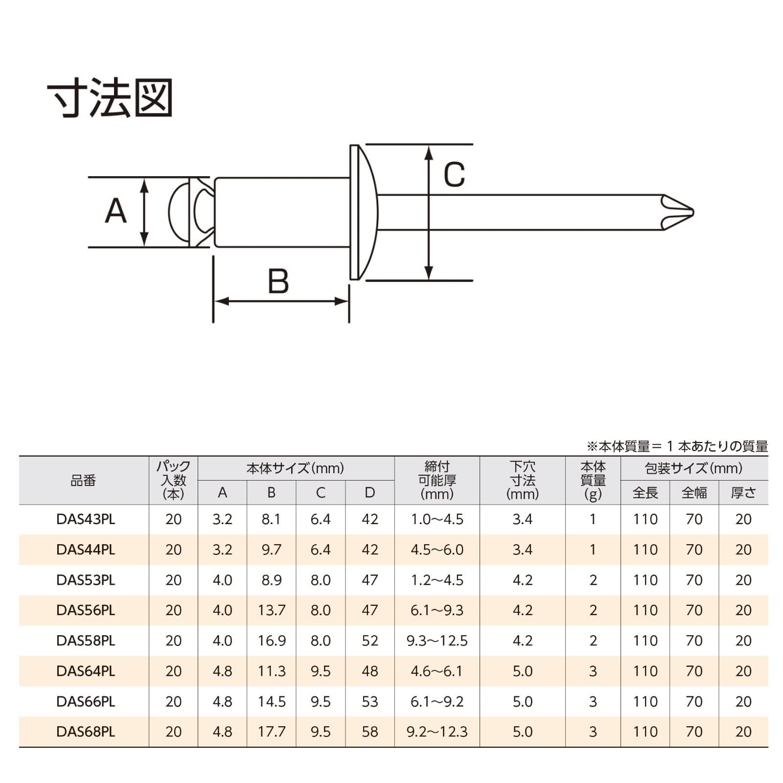 サイズ:Aスリーブ径、Bスリーブ長、Cフランジ径