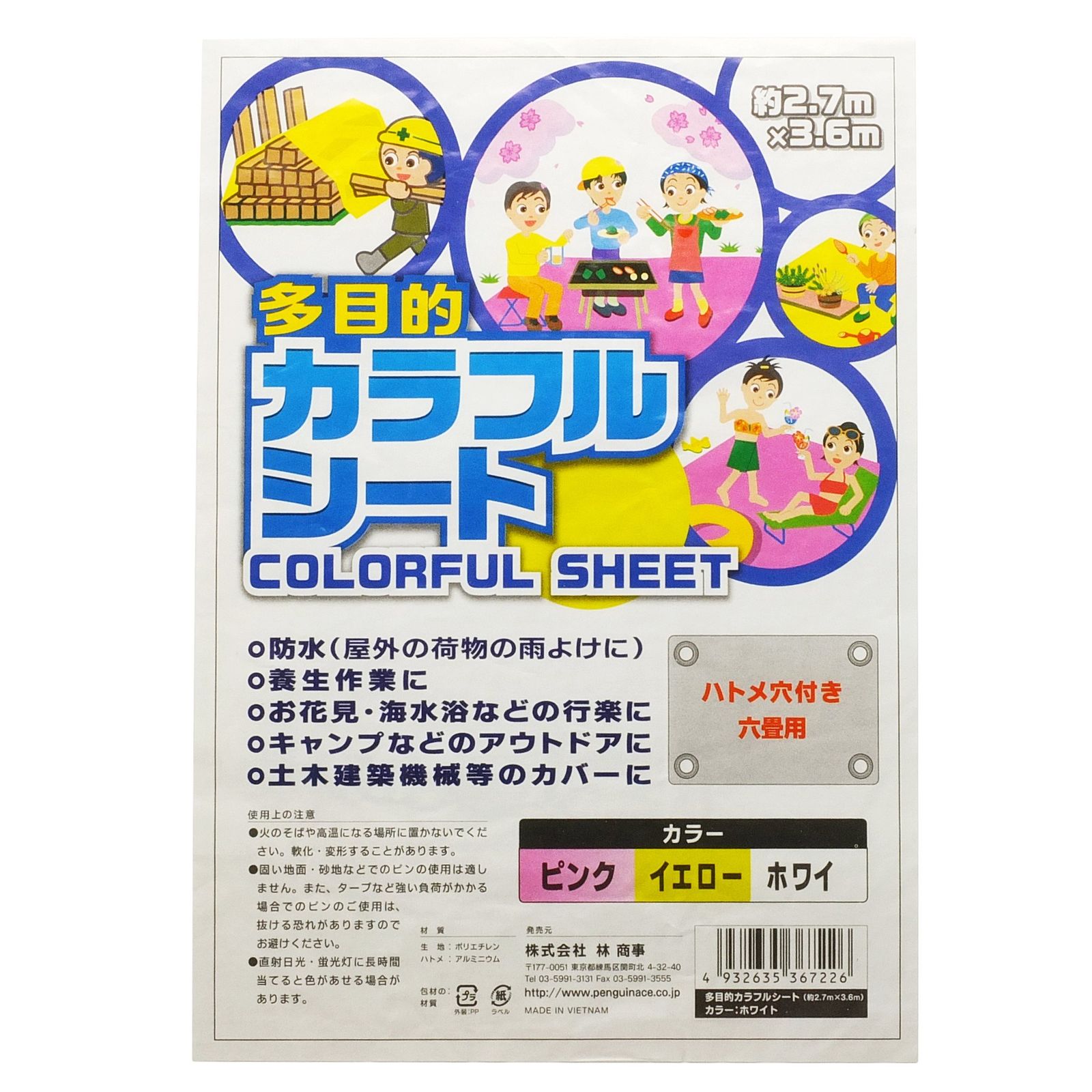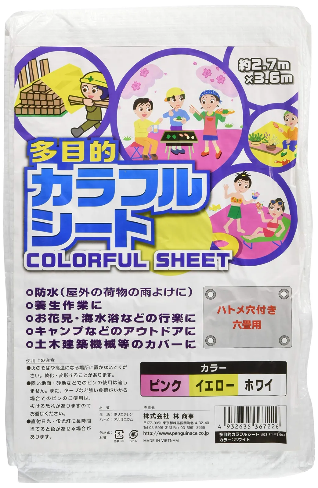 ・防水(屋外の荷物の雨よけに)や養生作業、お花見、海水浴などにも使える多目的シートです。