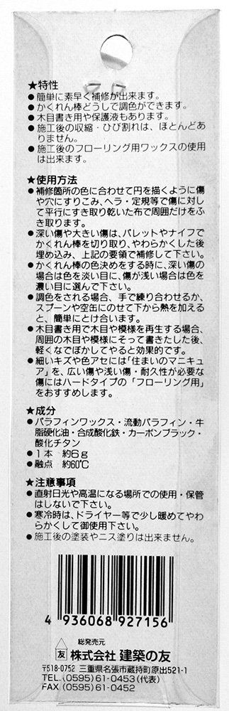 フローリングや木製品の補修に最適、キリキズに直接スリ込めるソフトタイプ