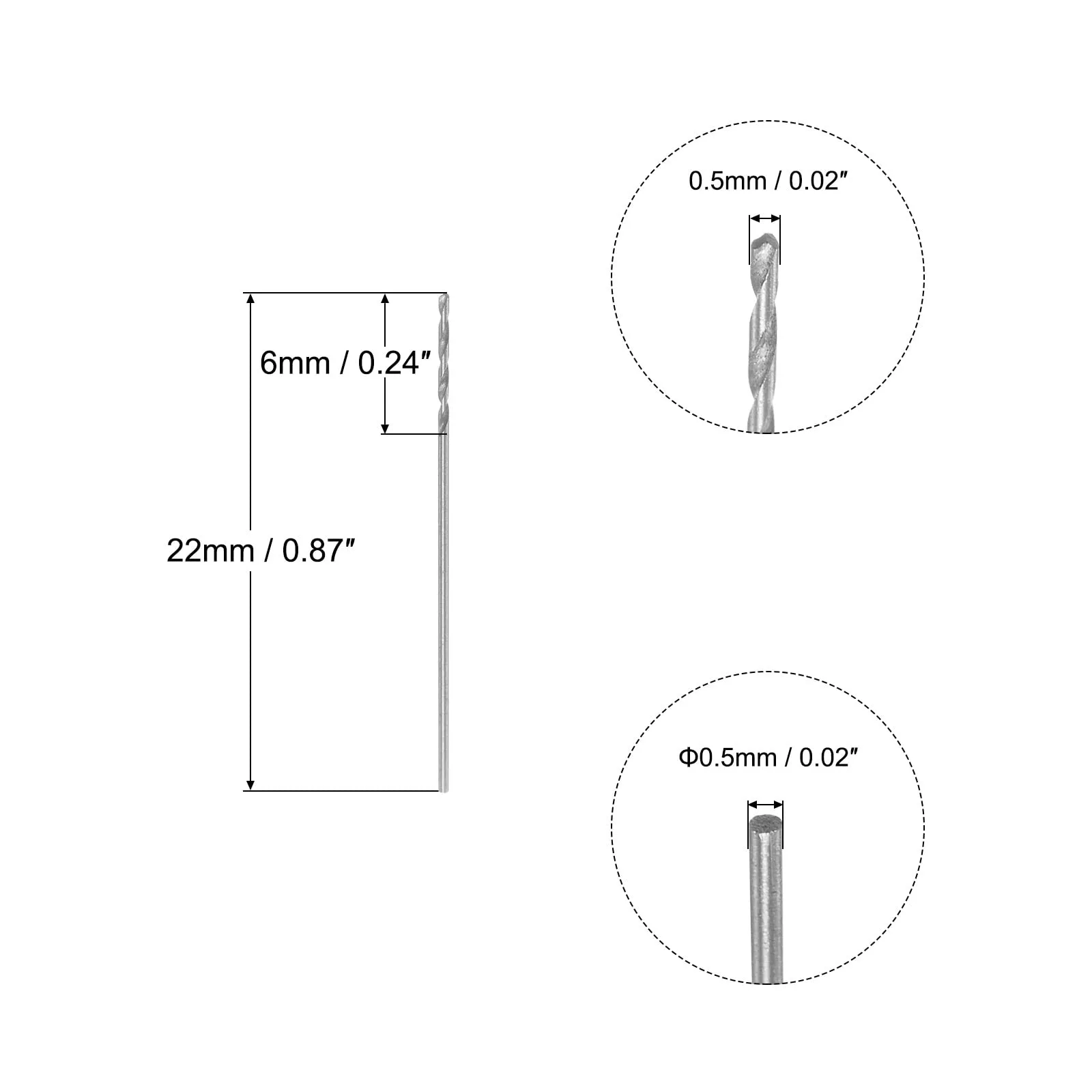 【仕様】:ドリルビット直径:0.5 mm、フルート長さ:6 mm、シャンク直径:0.5 mm、全長:22 mm; 10xドリルビット