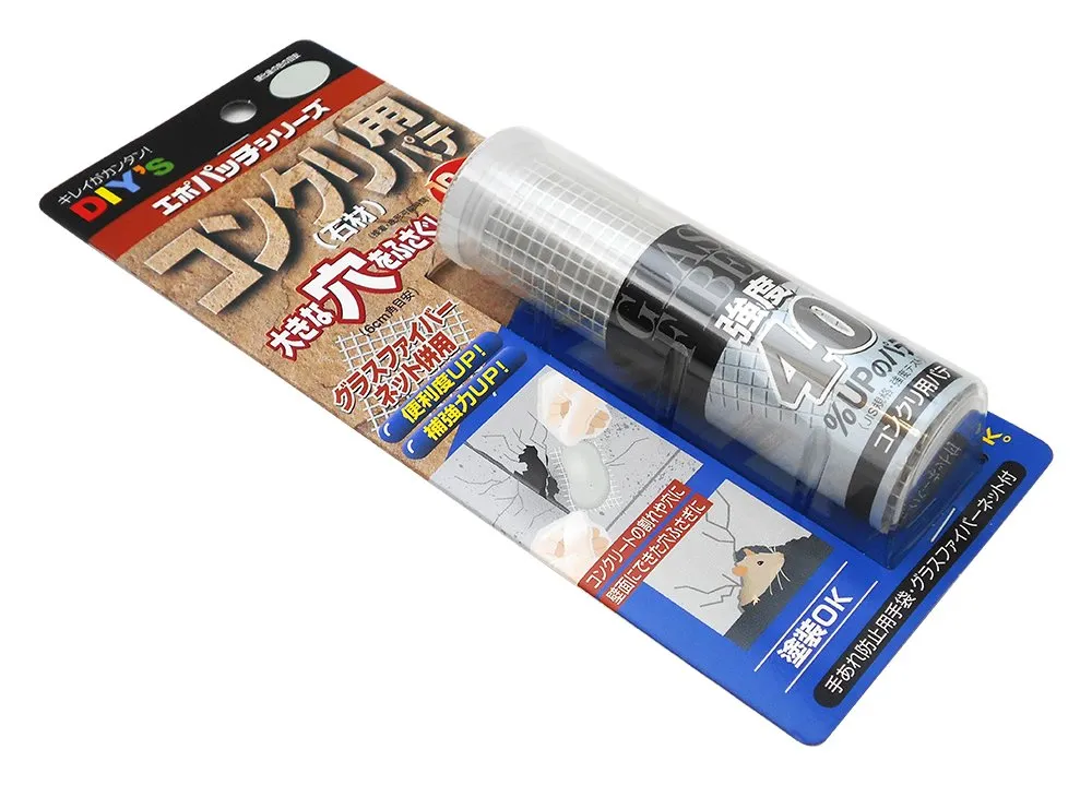 透明シートとグラスファイバーネットを併用することでパテが広げやすく、大きな穴やヒビ割れ等も簡単にふさぐことができます