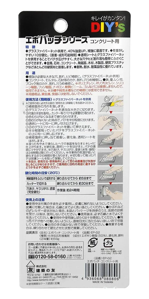 コンクリートや石材、モルタル、鉢、壷、レンガ、ブロック等の穴うめ・割れ補修に! 大きな穴(6cm角目安)をふさぐ!