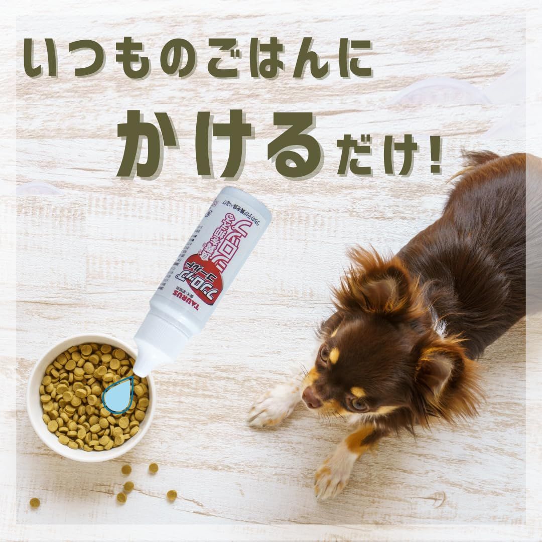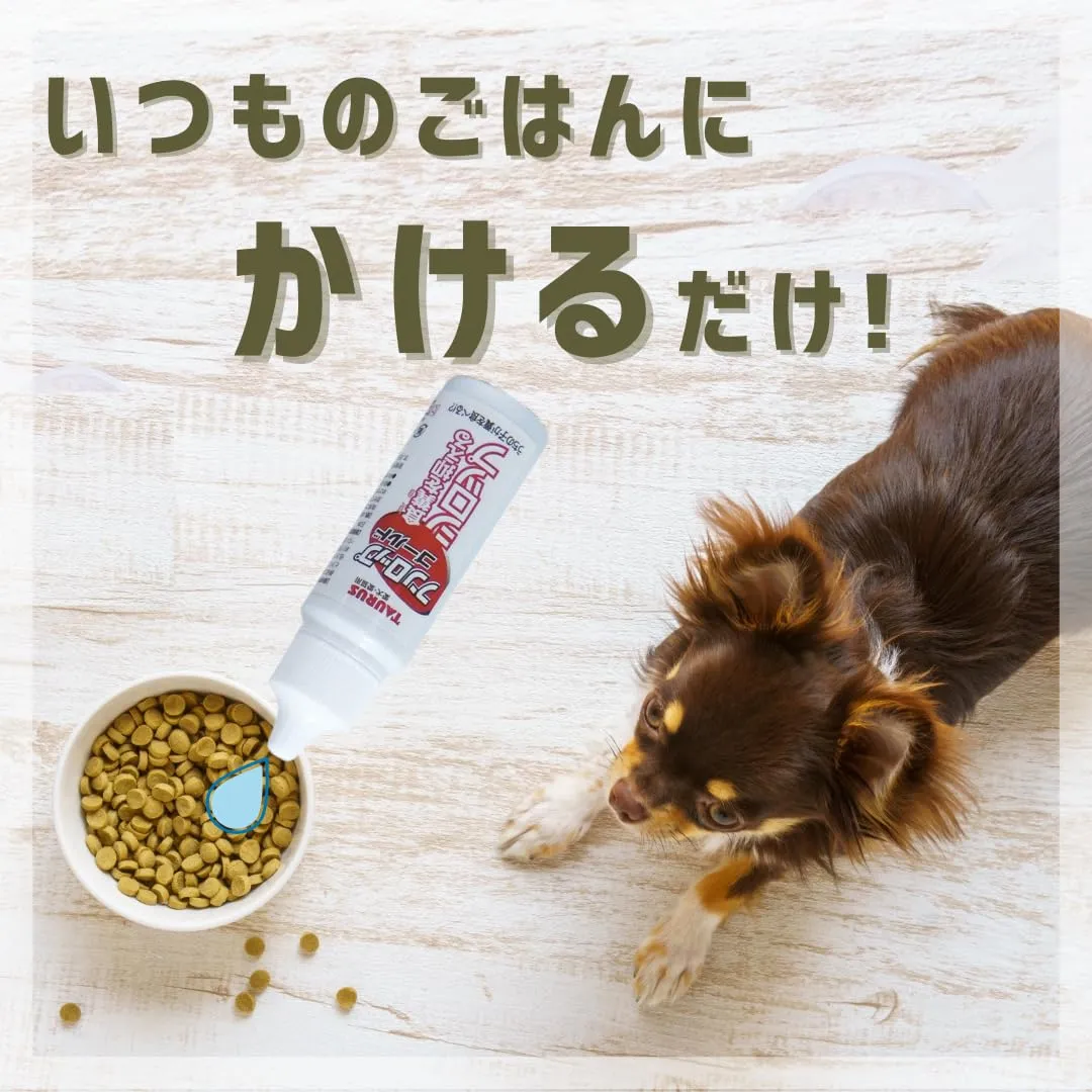 猫・幼・小型犬:4~5滴、中・大型犬:6~7滴を毎食毎フードにかけて与えてください。