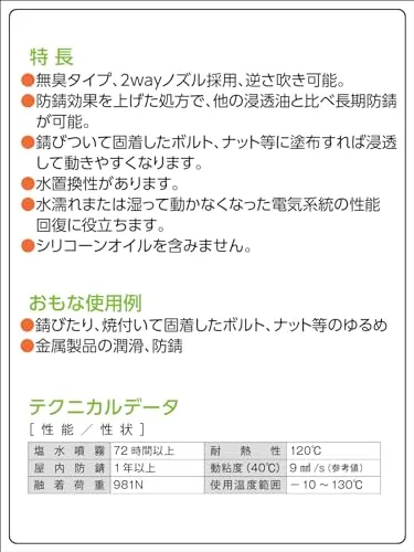 錆つきボルト、ナット等の緩め、湿った電気系統の性能回復、自動車の分解修理作業等