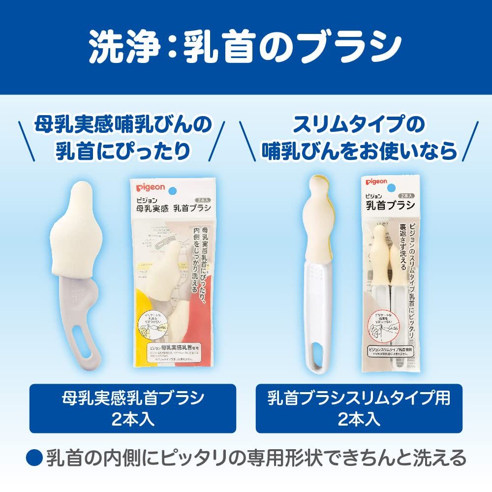 ピジョンのスリムタイプ乳首にピッタリ。裏返さずに洗えます。※ピジョン母乳実感乳首にはお使いいただけません。