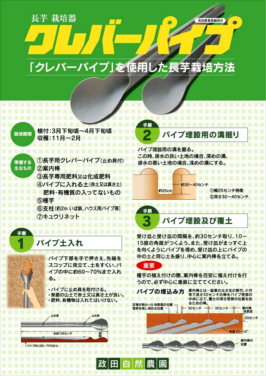新品 政田自然農園 (繰り返し使える) 長芋栽培用 クレバーパイプ(105cm) 10本セット 止め具付き