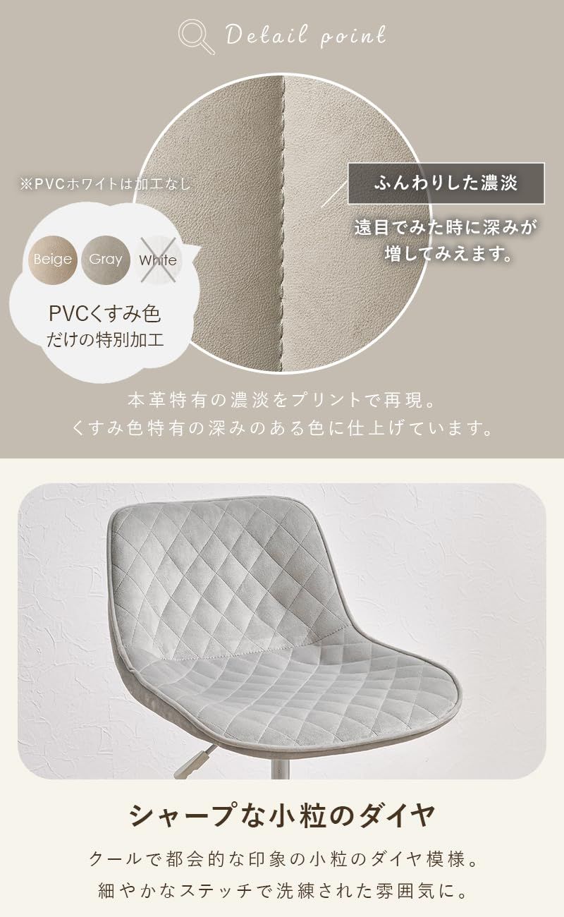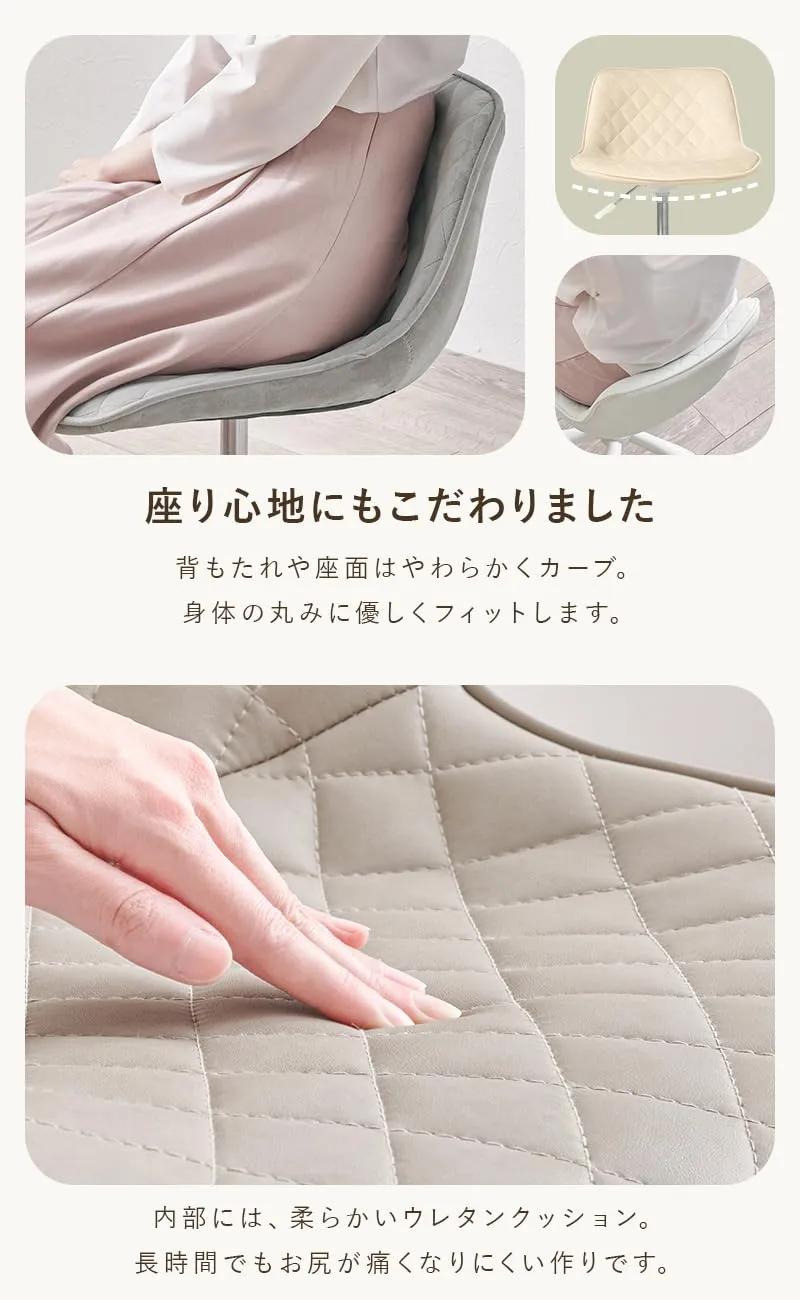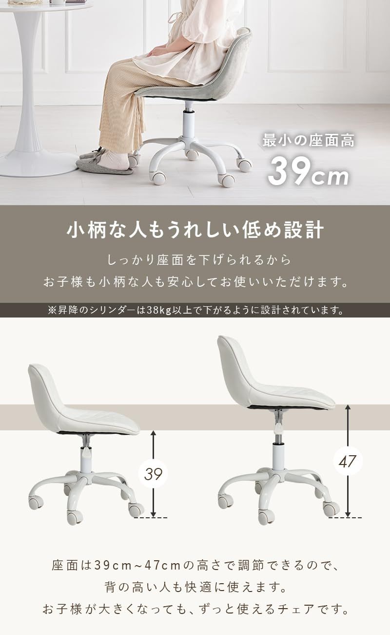 3モデル×5色から選べるかわいいデスクチェア。背もたれや座面はやわらかくカーブしており、身体の丸みに優しくフィットします。
