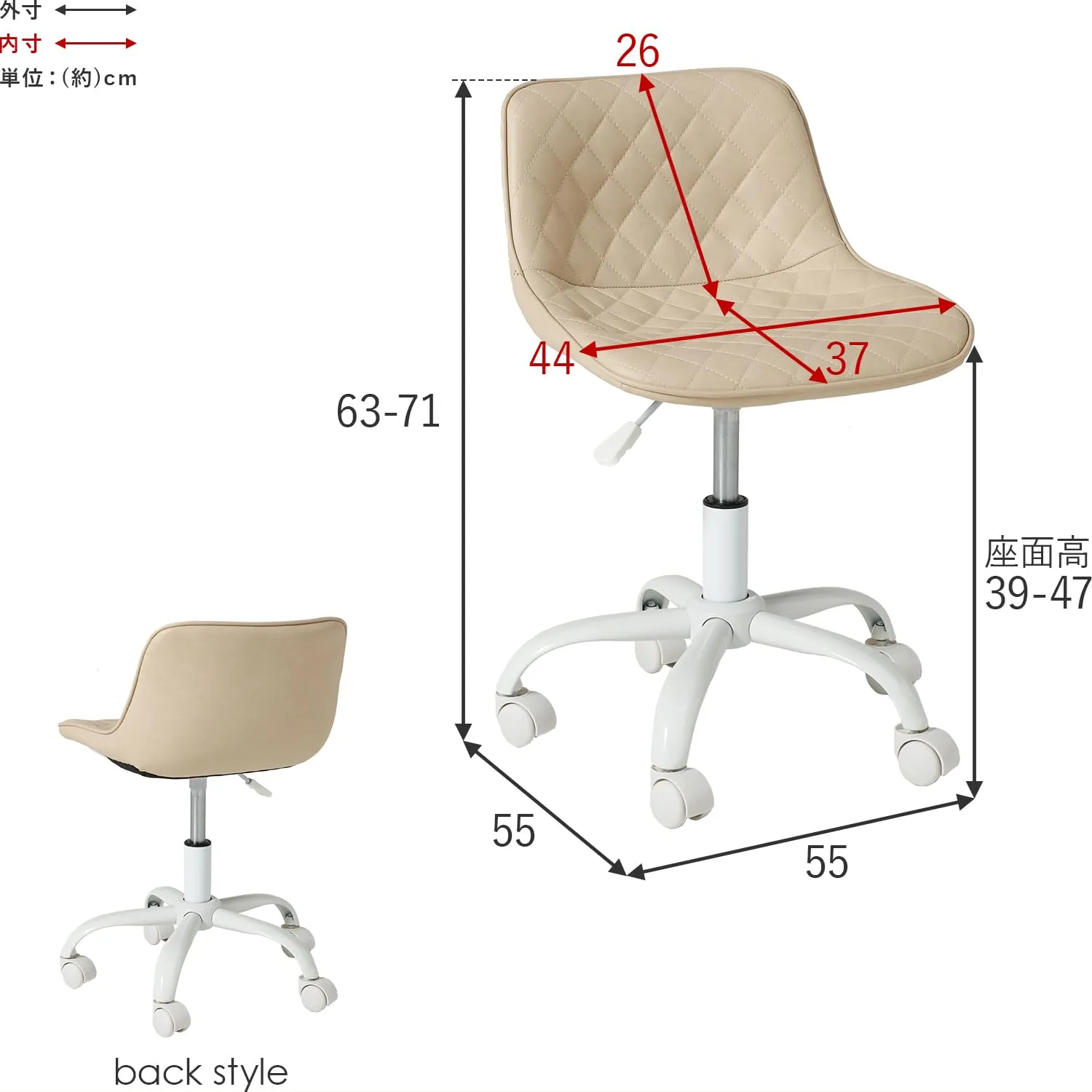 【商品サイズ(約)】幅55×奥行55×高さ63-71cm