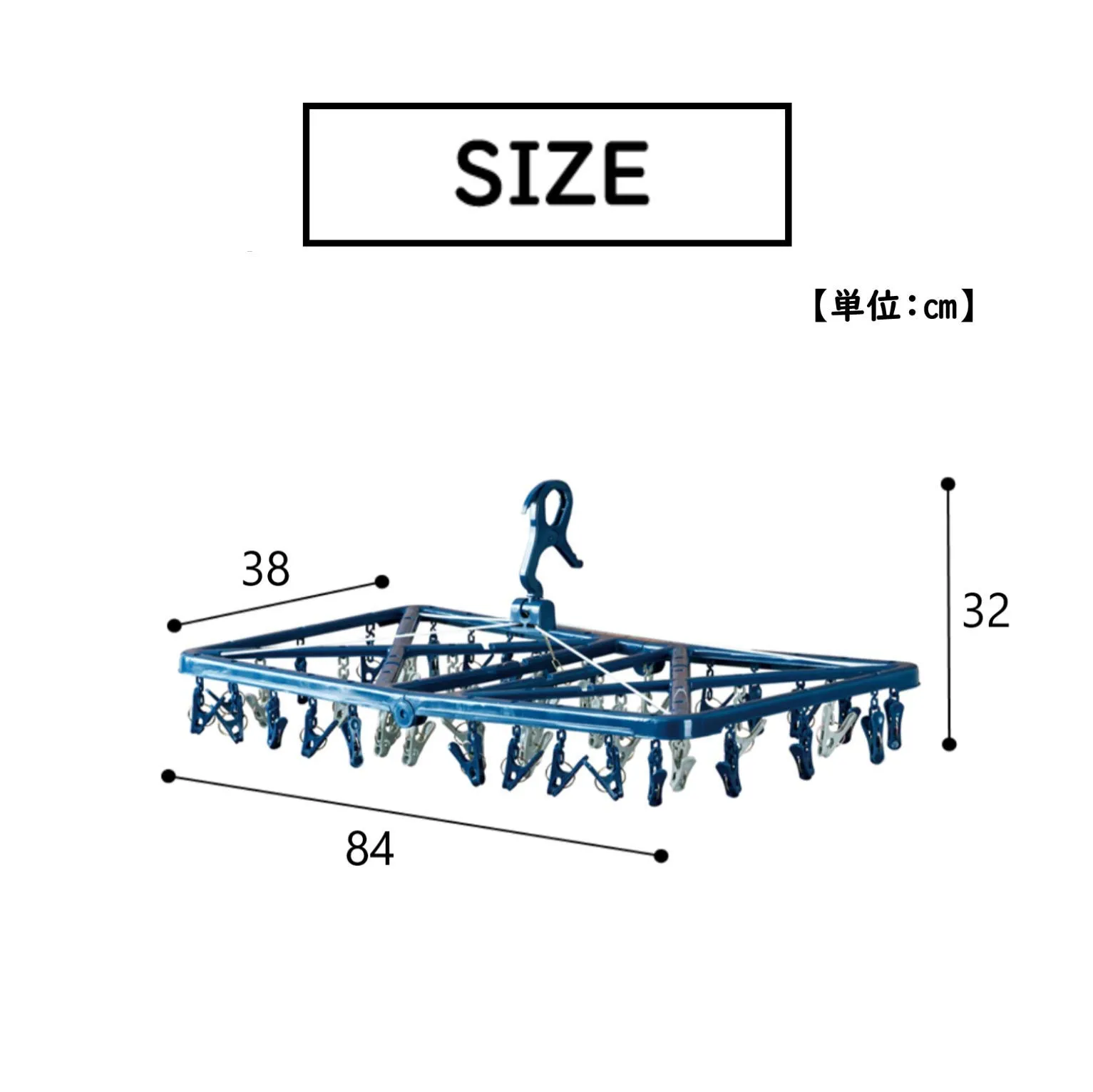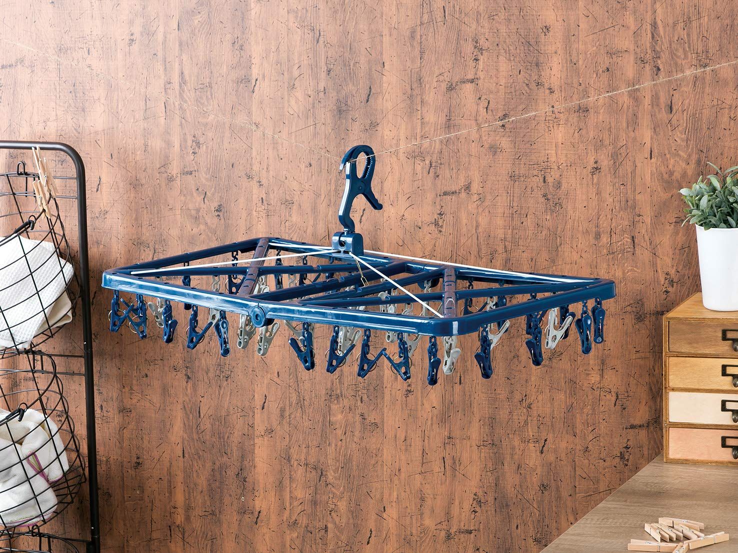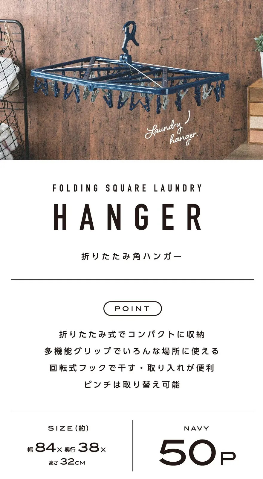 洗濯ばさみが50個付いていて、たくさん干せる!くつ下やハンカチなどの小物干しにも便利!