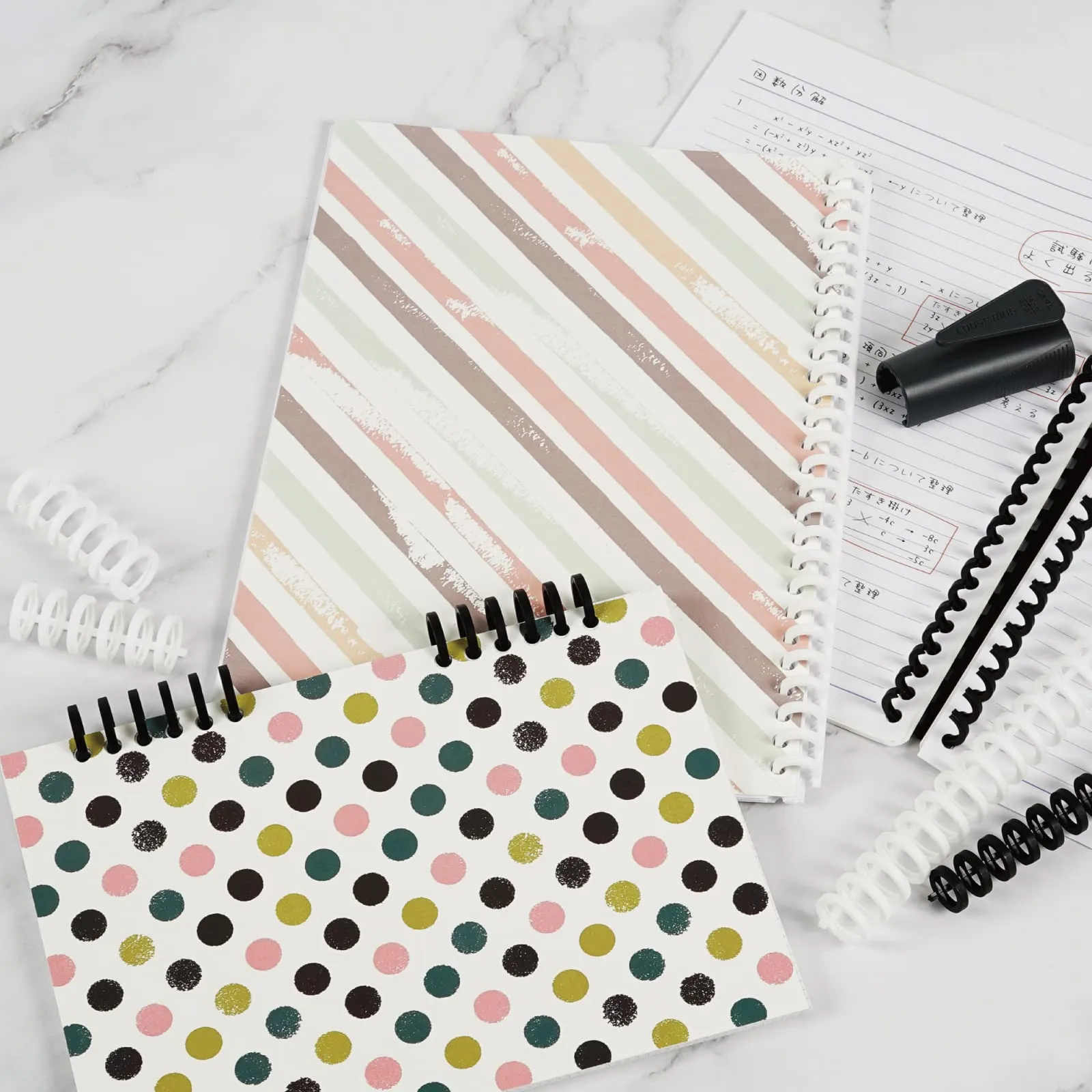 オリジナルノートやカレンダーを作るも良し、配布資料を綴るも良し、市販のリングノートをバインダー化するも良し、多彩な活用方法が広がります。