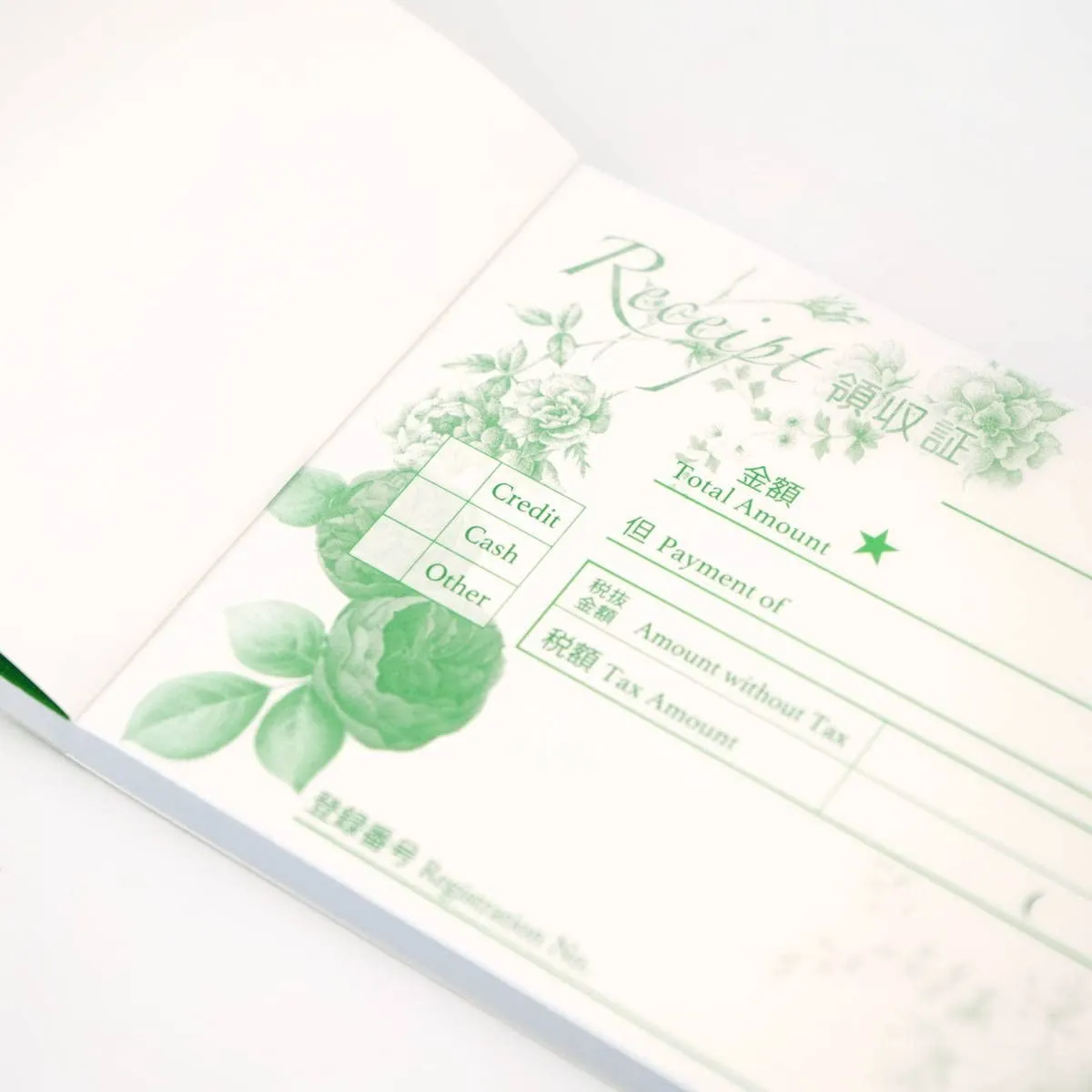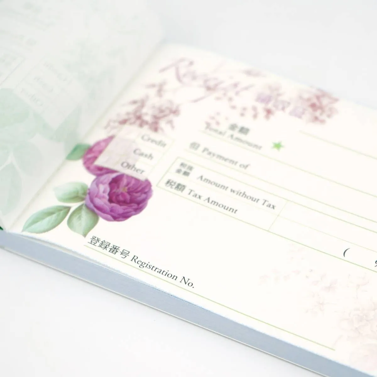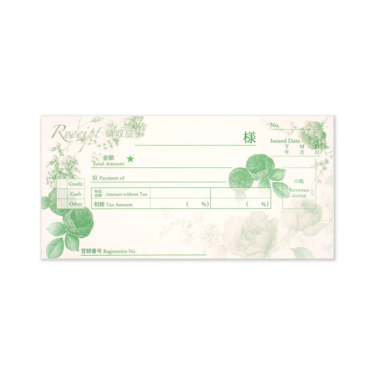 華やかに見えるおしゃれな領収書です。ノーカーボンで、2枚複写タイプ。ミシン目できれいに切り離せます。40シート。小切手サイズ。