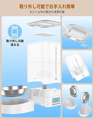 【定時定量 柔軟給餌】HONEYGUARDIAN自動給餌器は従来の小さくて硬いボタンを廃止し、柔らかいシリコンボタンを使用して、0から24ポーション(1ポーションは6g)、1日1から6回の給餌計画を簡単に設定できます。 柔軟で健康的かつ合理的な給餌計画を通じて、ペットは良い食習慣を身につけられるだけでなく、肥満などの病気から遠ざかることができます。