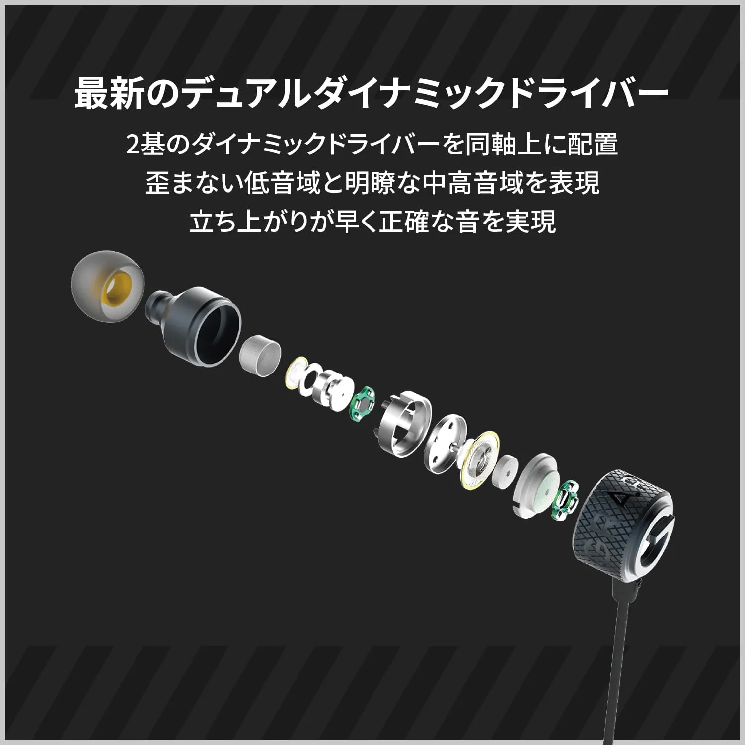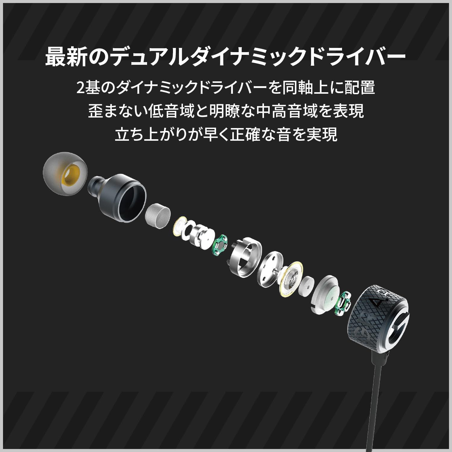 【最新のデュアルダイナミックドライバー】2基のダイナミックドライバーを同軸上に配置。歪まない低音域と明瞭な中高音域を表現。立ち上がりが早く正確な音を実現します。