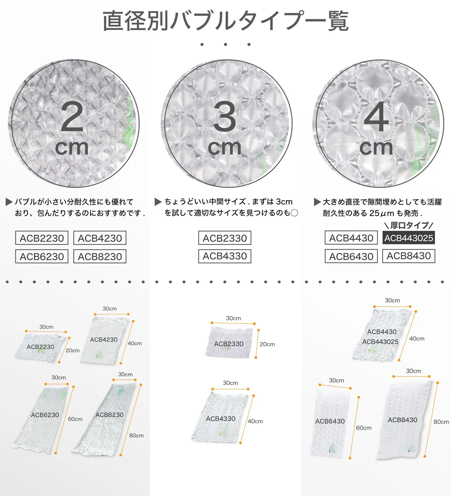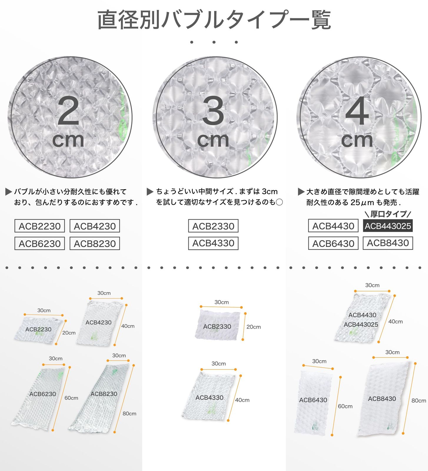 エアーバブル1粒列の幅:2cm(小粒)