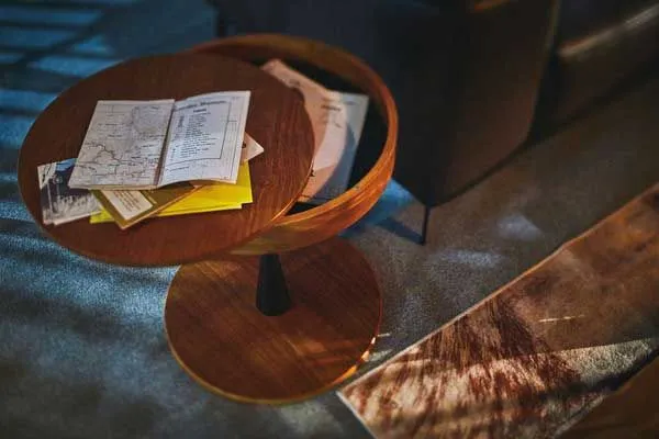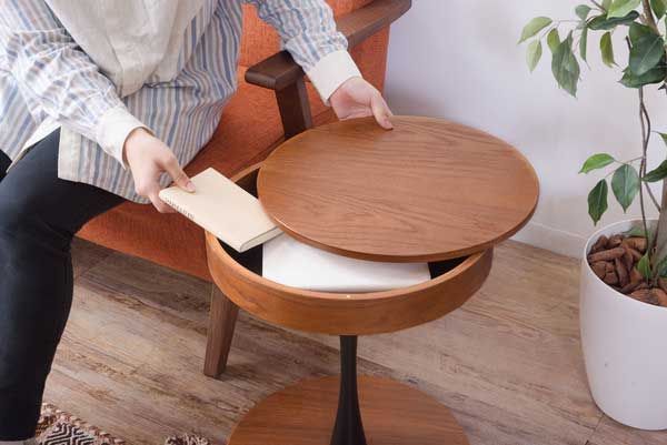 天板下にスペースのあるサイドテーブル。
