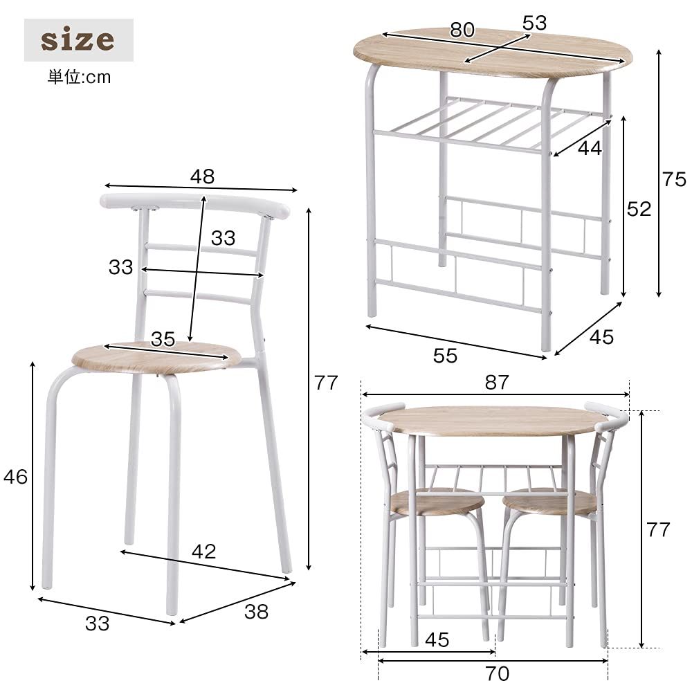 【サイズ】テーブル:幅80x奥行53x高さ75cm チェア:幅48x奥行38x高さ77cm(座面高さ: 46cm)
