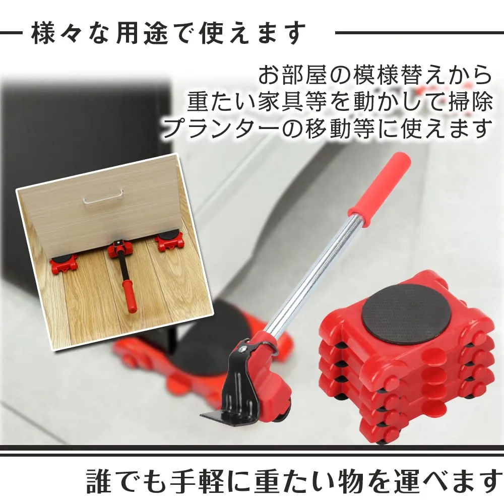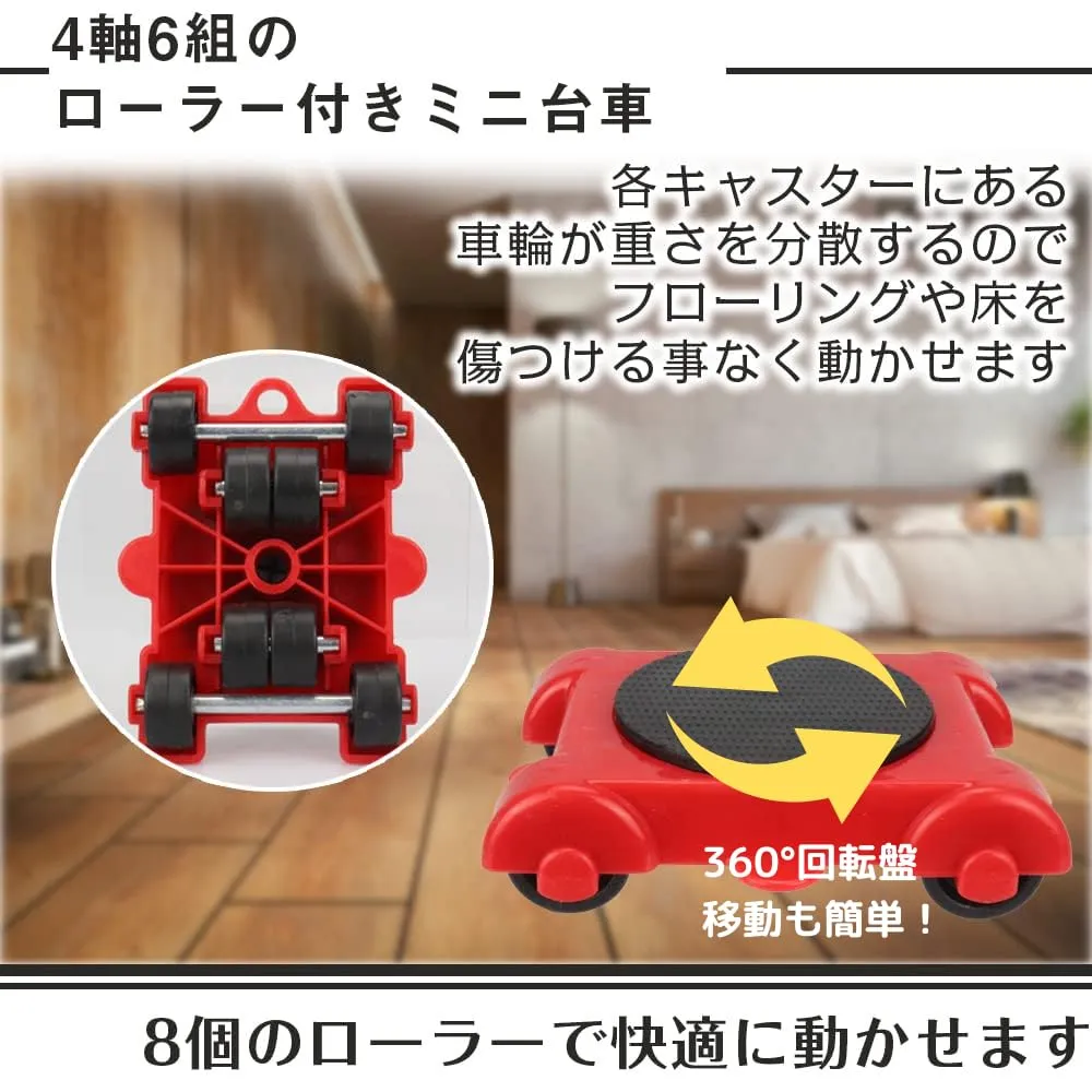 四隅に付属の台車を設置すれば簡単に移動ができます。大掃除や模様替えなど家具を動かすシーンに欠かせない、一家に一台のマストアイテムです。