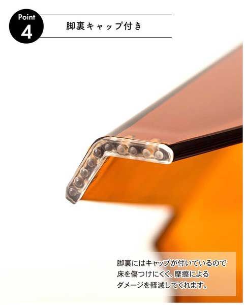 ●脚裏にはキャップが付いているので床を傷付けにくく摩擦によるダメージを軽減。