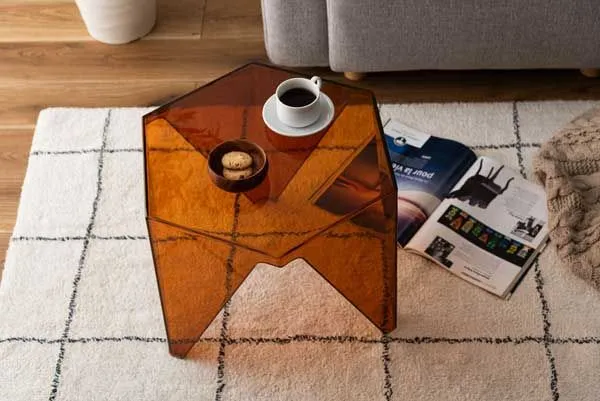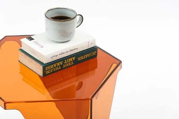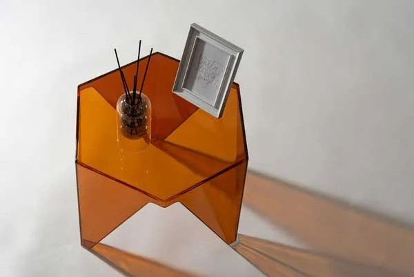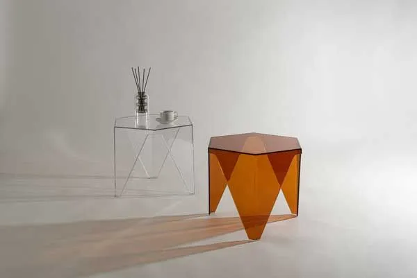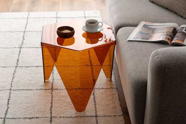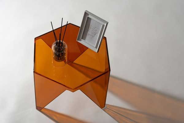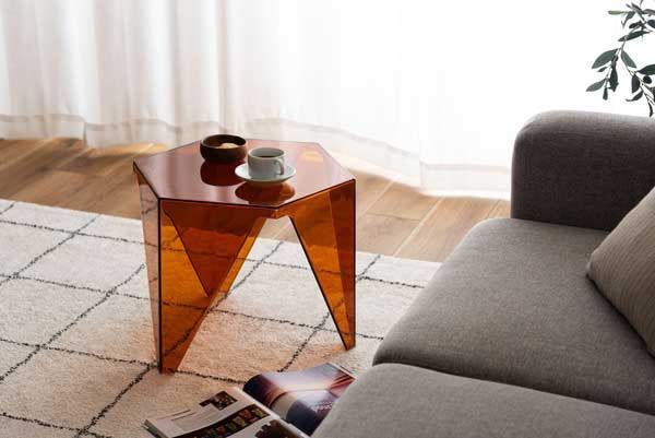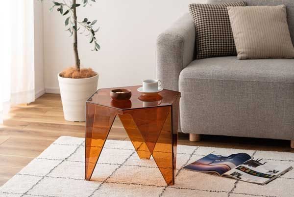 ●シャープな造形と光を透かす素材が魅力のサイドテーブル。