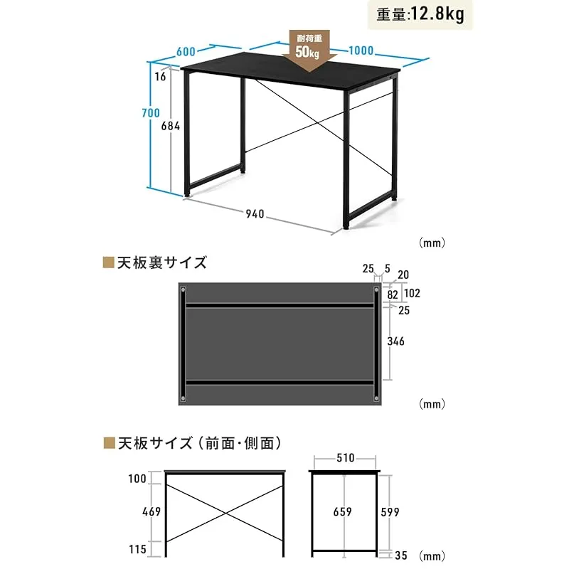 横幅100cm、奥行60cm、高さ70cmの シンプルワークデスク です。シンプルな作りなので 勉強机 や 作業机 、パソコン机 や ゲーミングデスク など使い方はあなた次第!