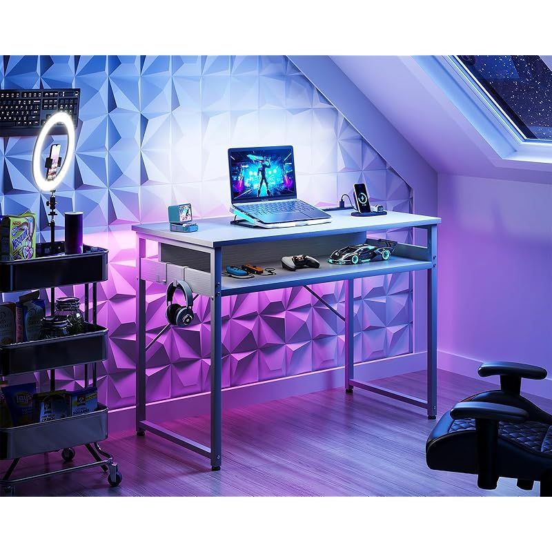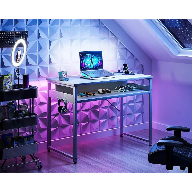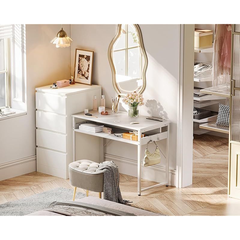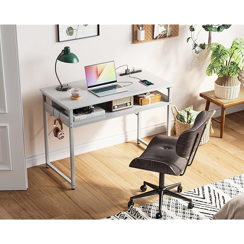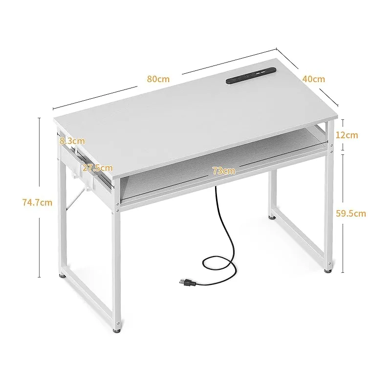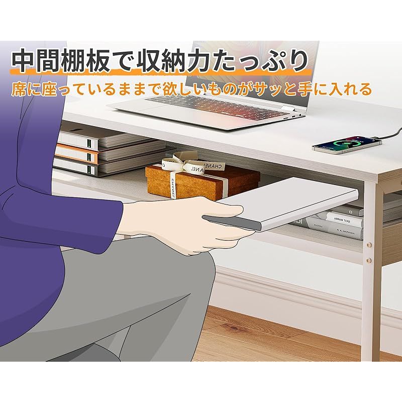 ODK 机 pcデスク パソコンデスク 幅80cm ゲーミングデスク 収納付き コンセント付き 勉強机 computer desk ?子 ワークデスク ??? フック2個付き コンパクト テレワーク用 省スペース 組立簡単 白い
